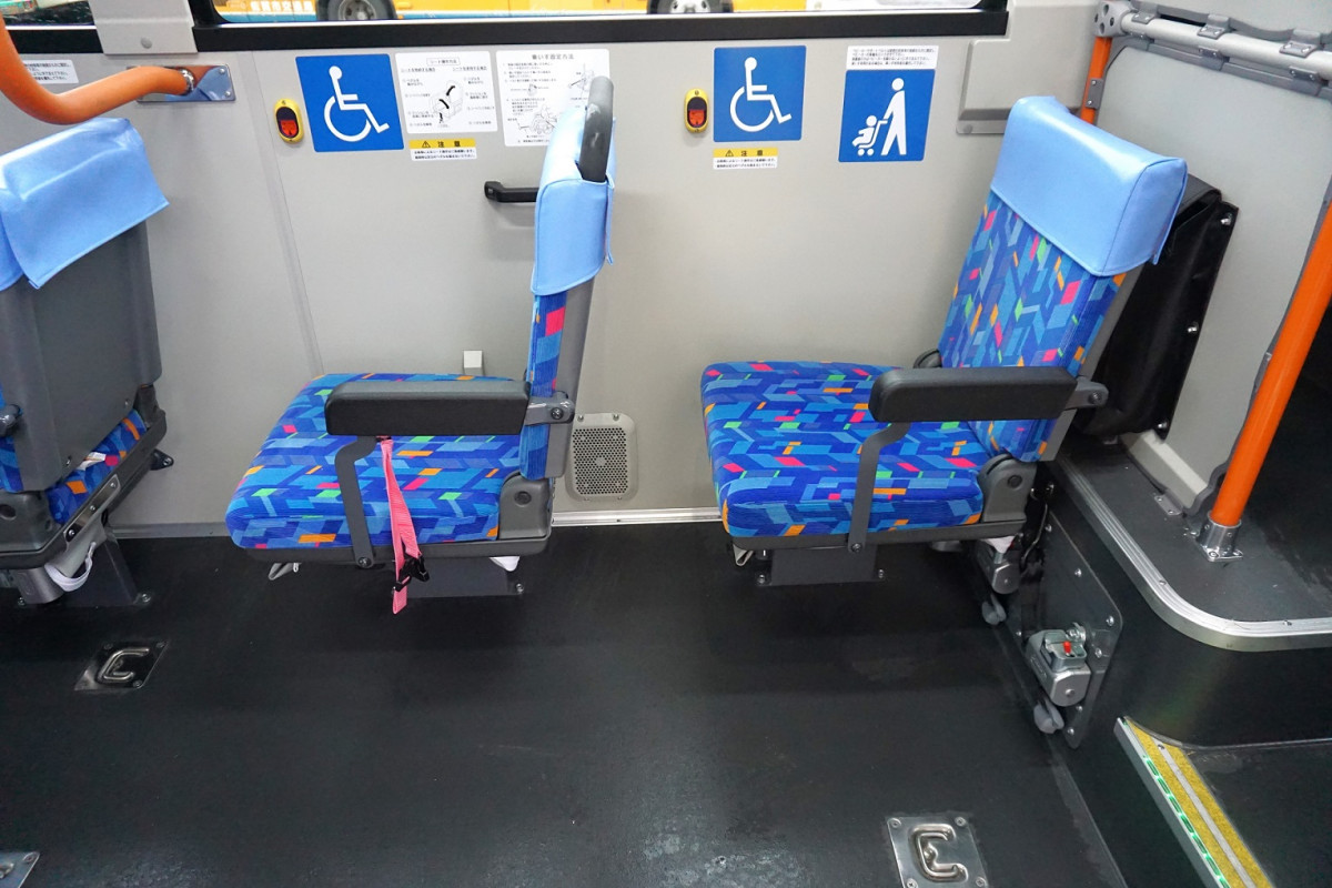 ノンステップバスとは、超低床の床面にしたことにより乗降ステップがなく、乗り降りしやすい構造のバスのことです。