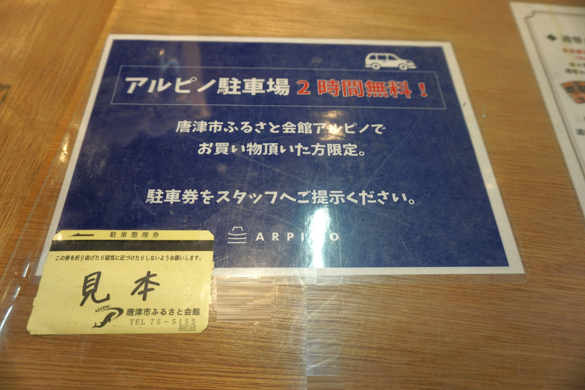 隣接する有料駐車場(唐津ふるさと会館駐車場)はお買い物された方2時間無料。