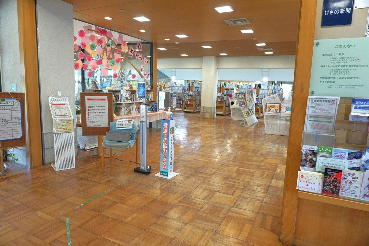 授乳室・おむつ交換台・お子さまトイレは図書館内にあります