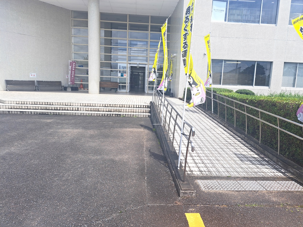 北側にある出入口まではスロープとなっており、駐車場から段差なく入館できます。