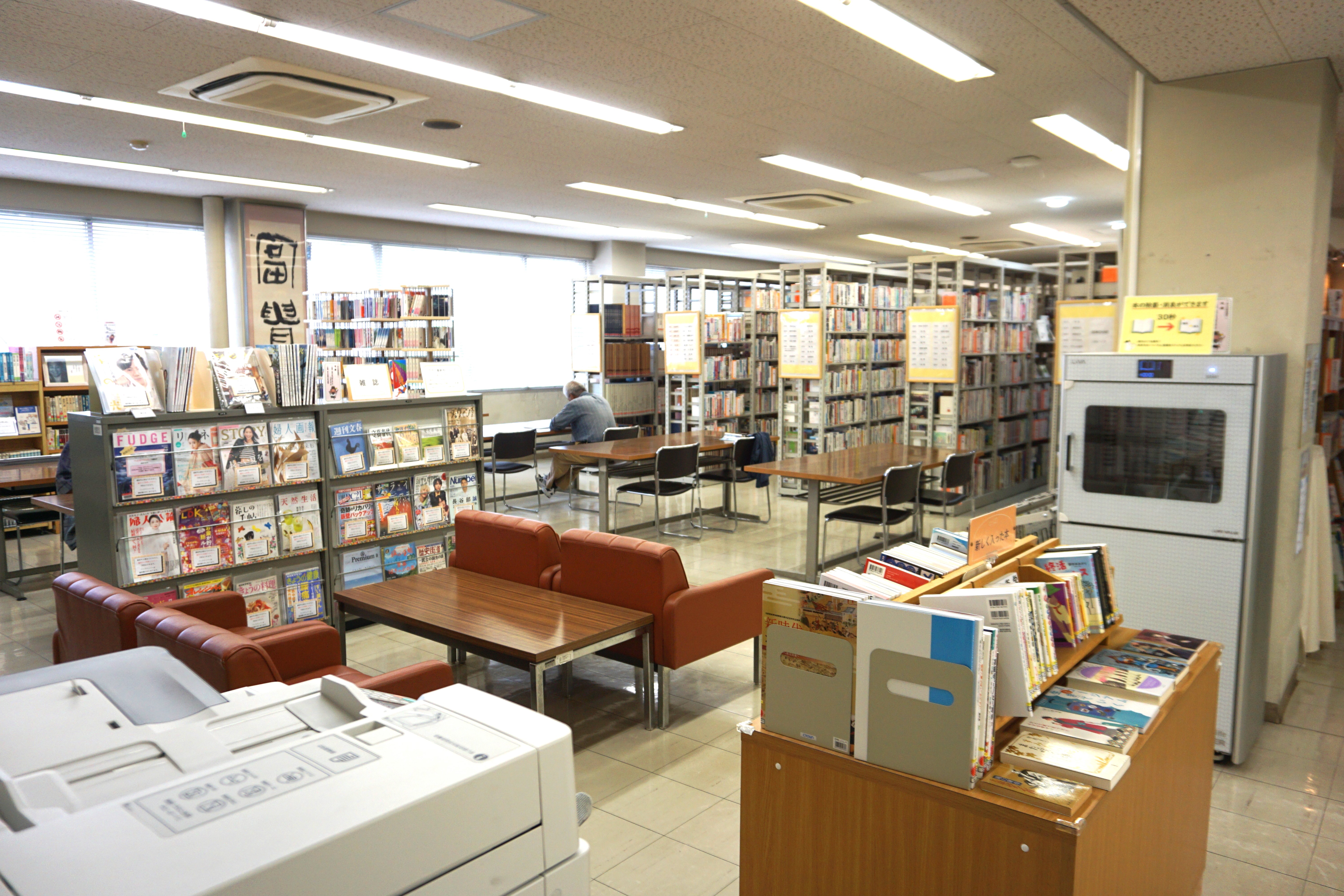 郷土資料や基本的資料をはじめとする図書資料を充実させ、わかりやすく利用しやすい配置を心がけてます!