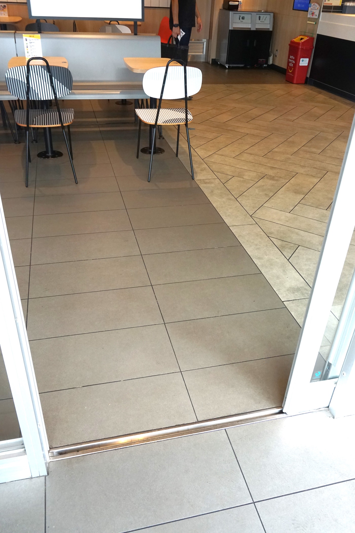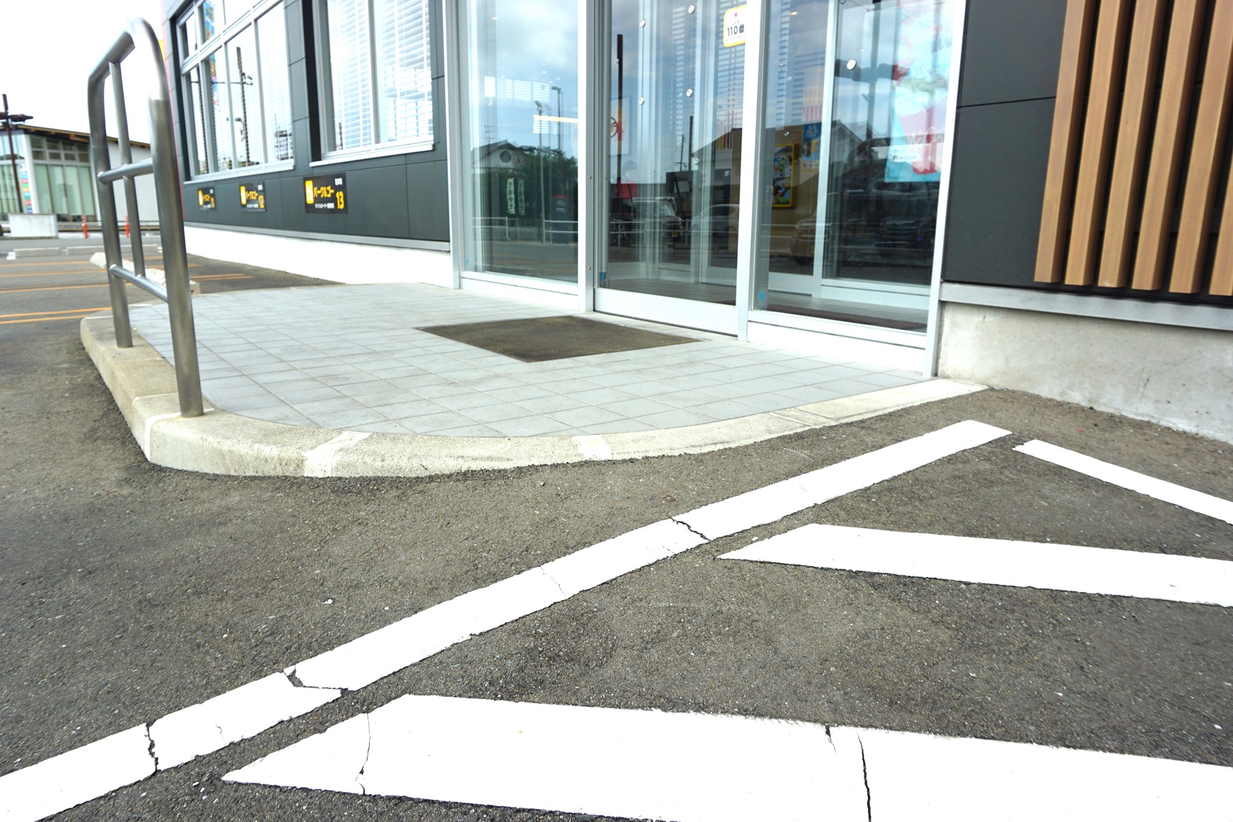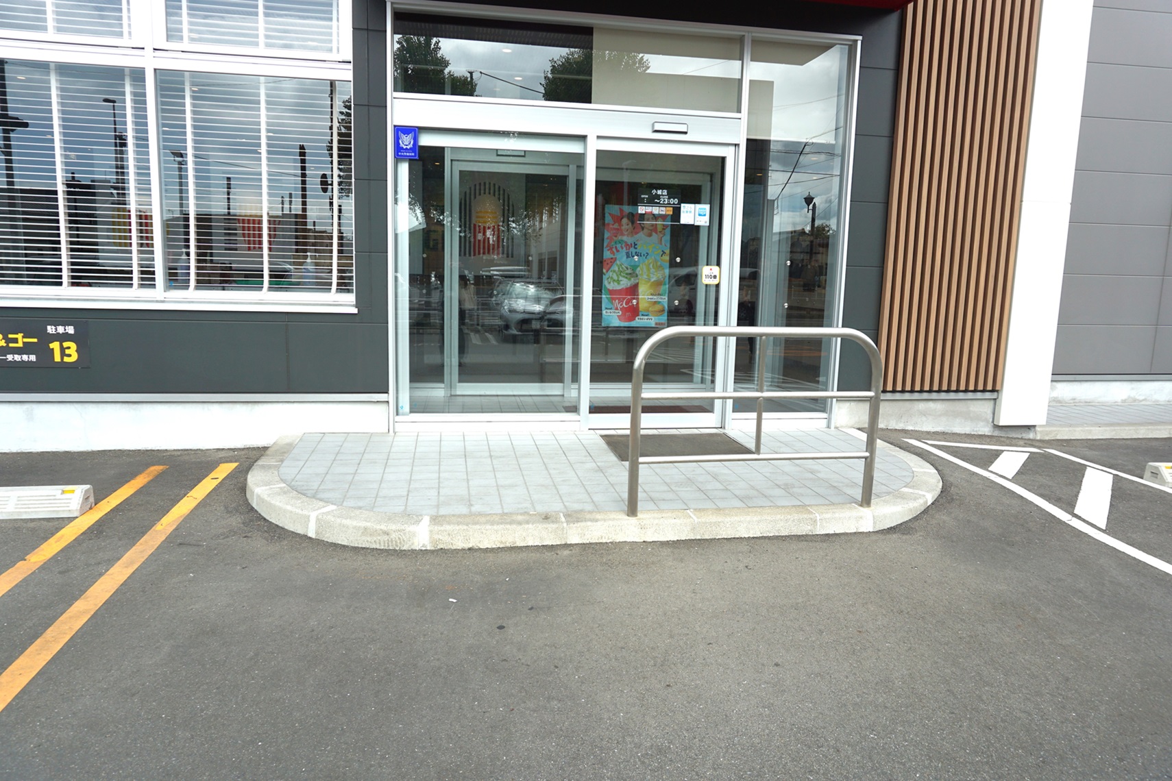 出入口前に段差が1段ありますが、店舗側の通路はフラットになっています。
