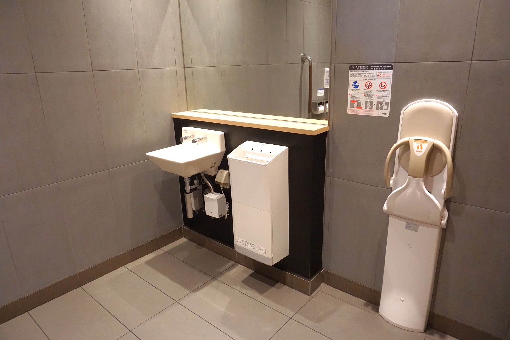 おむつ交換台とベビーキープはバリアフリートイレと女性用トイレ内に設置されています。