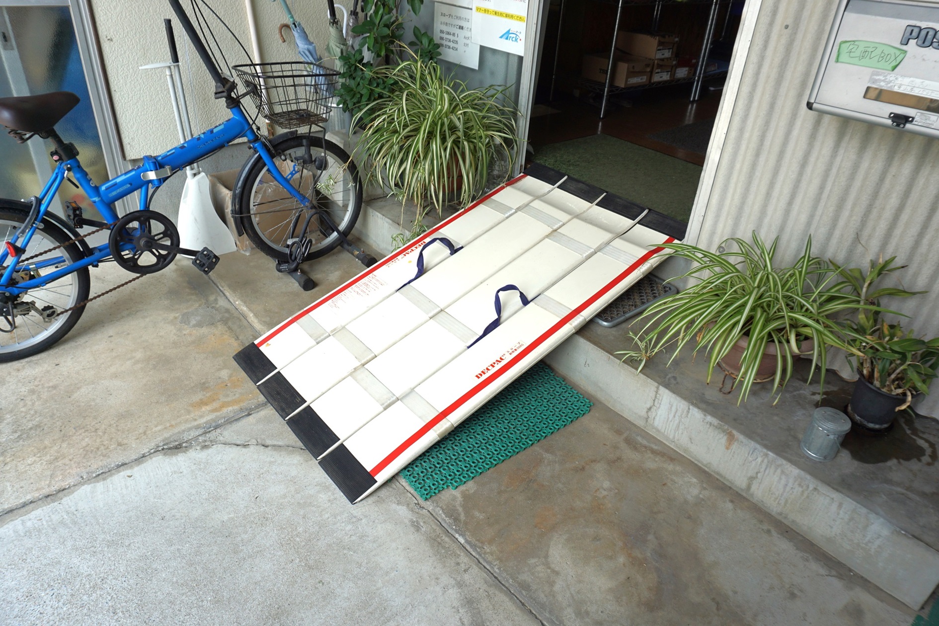 出入口に段差がありますが、事前のご連絡で取り付け式のスロープを設置いたします。