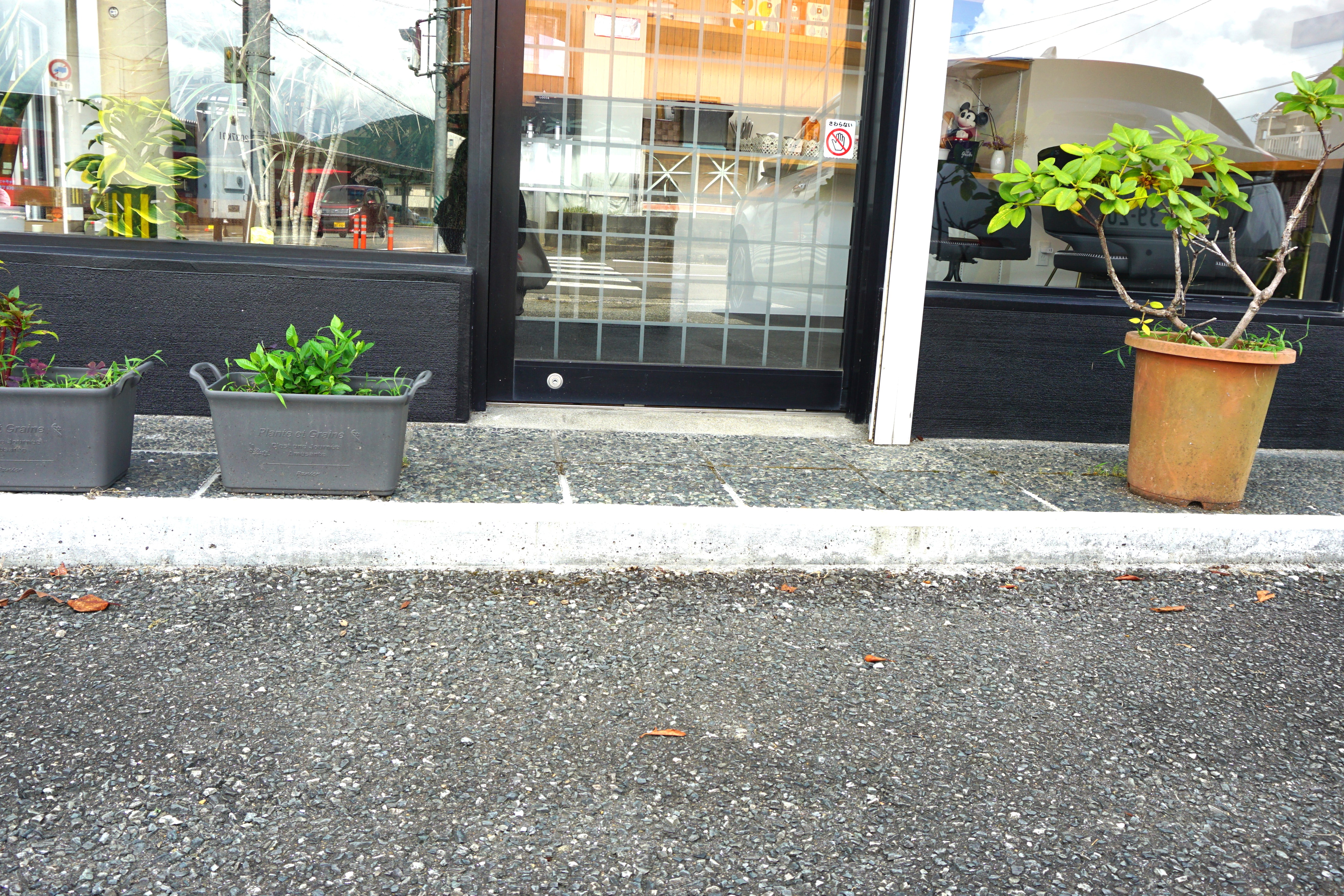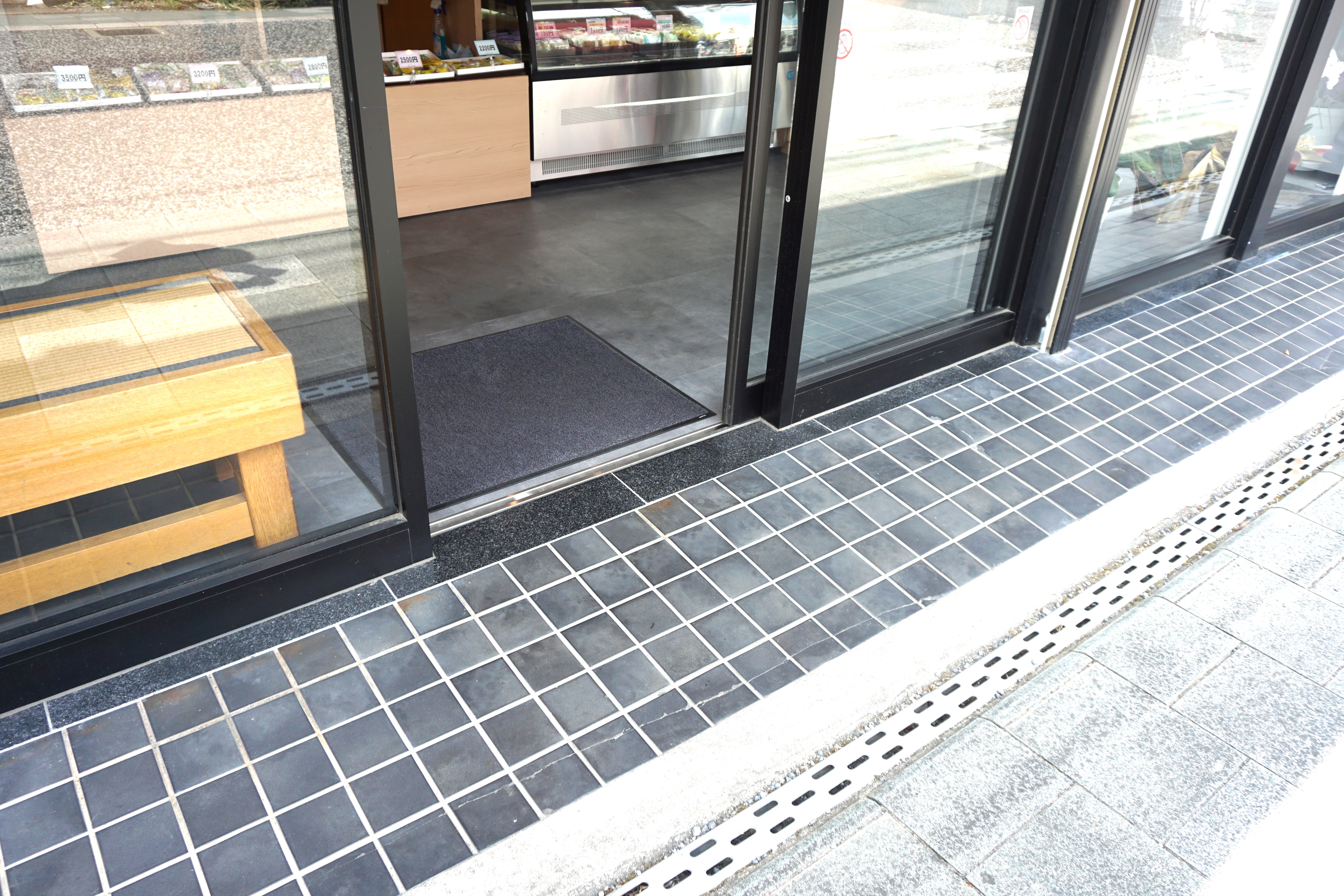 出入口は2か所あり、店舗正面はフラットです。