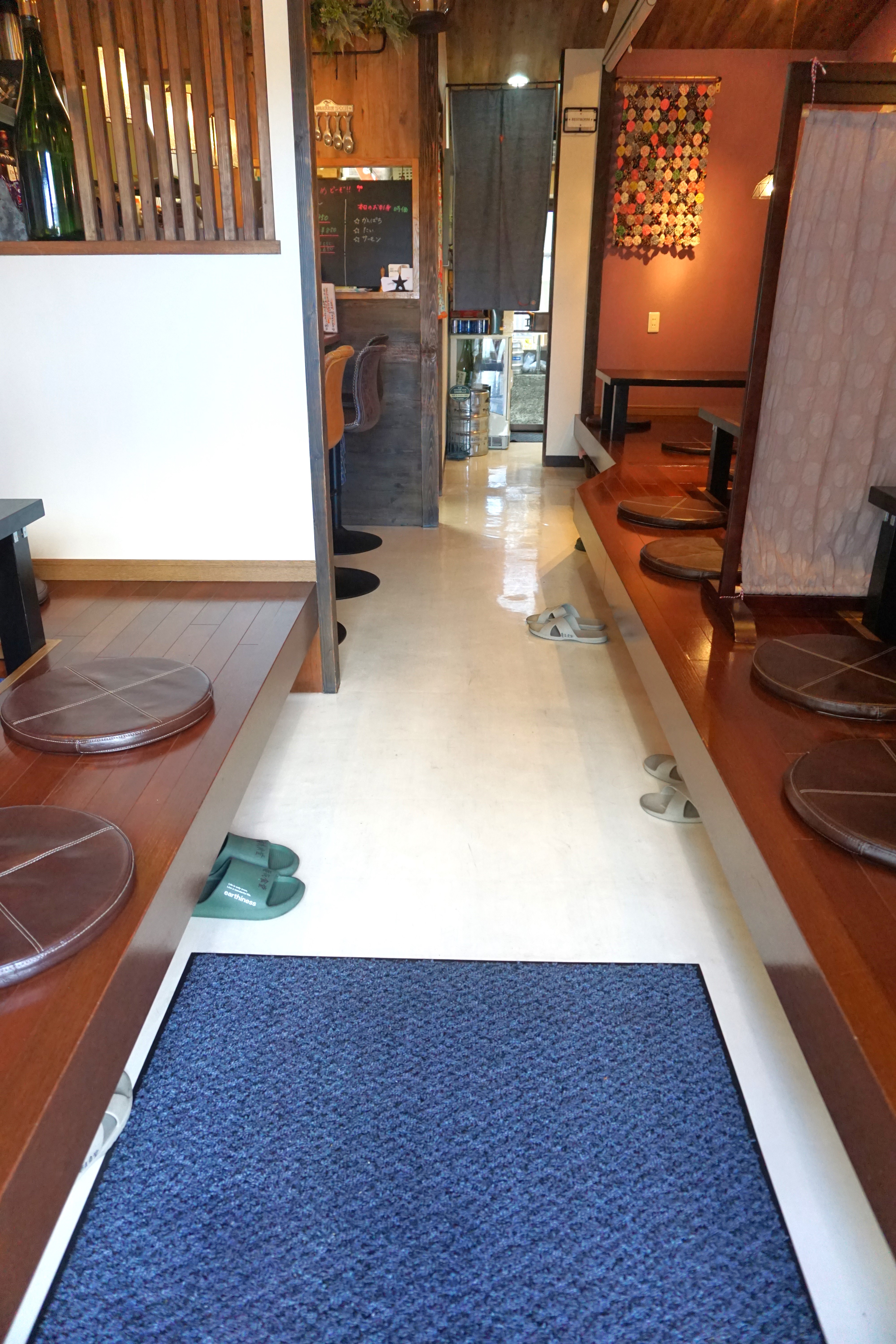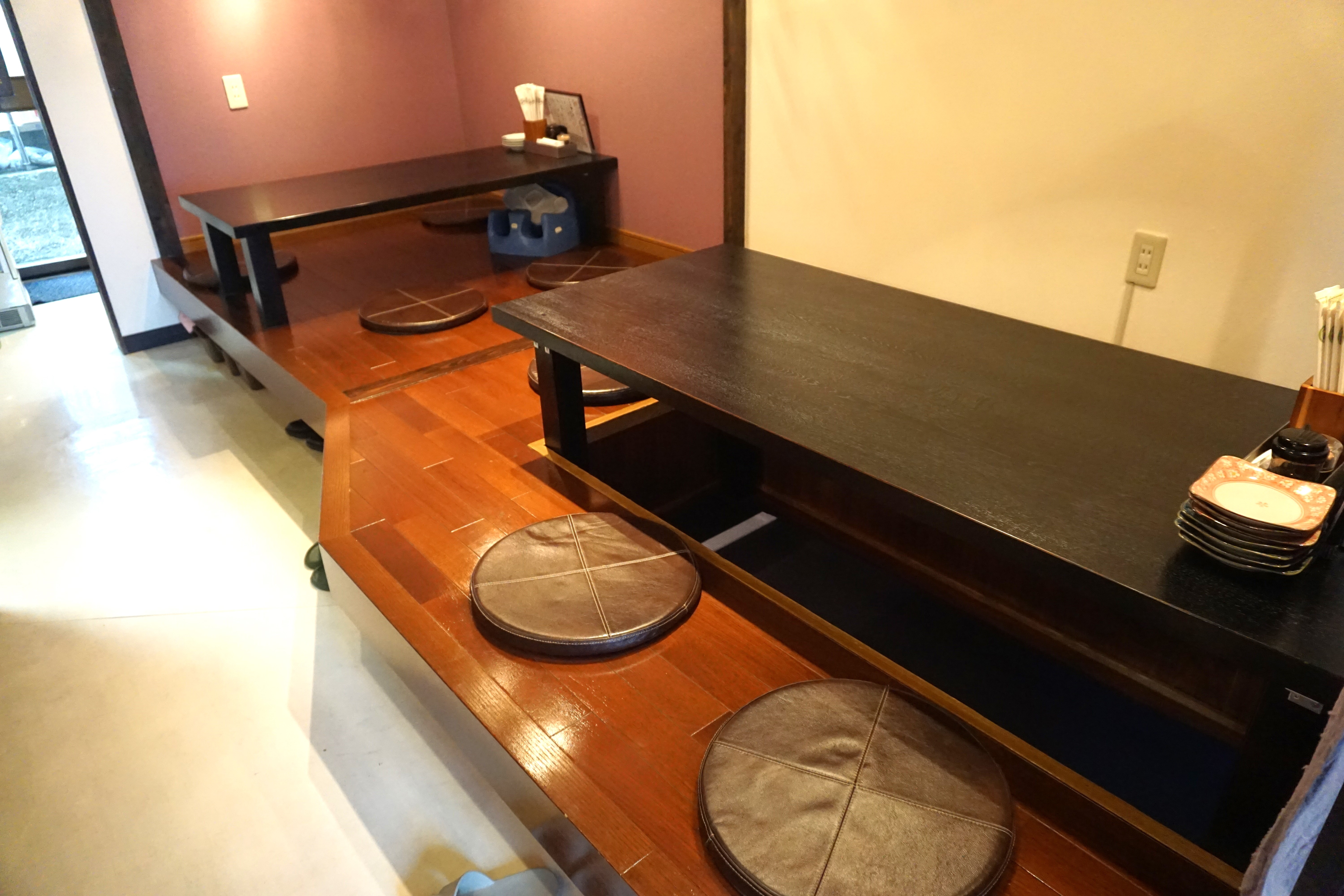 座敷席へは、靴を脱ぎ、1段上がってください