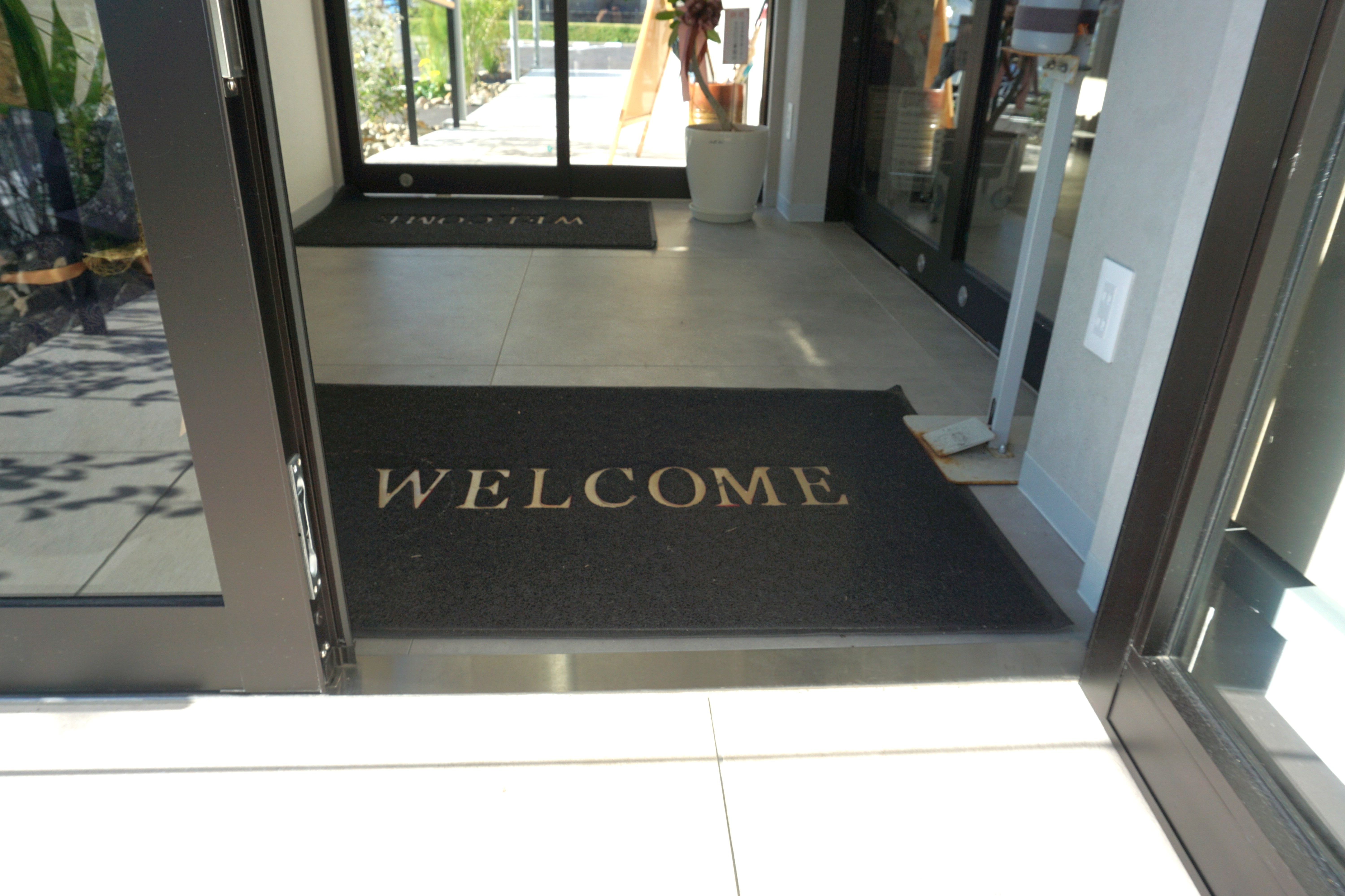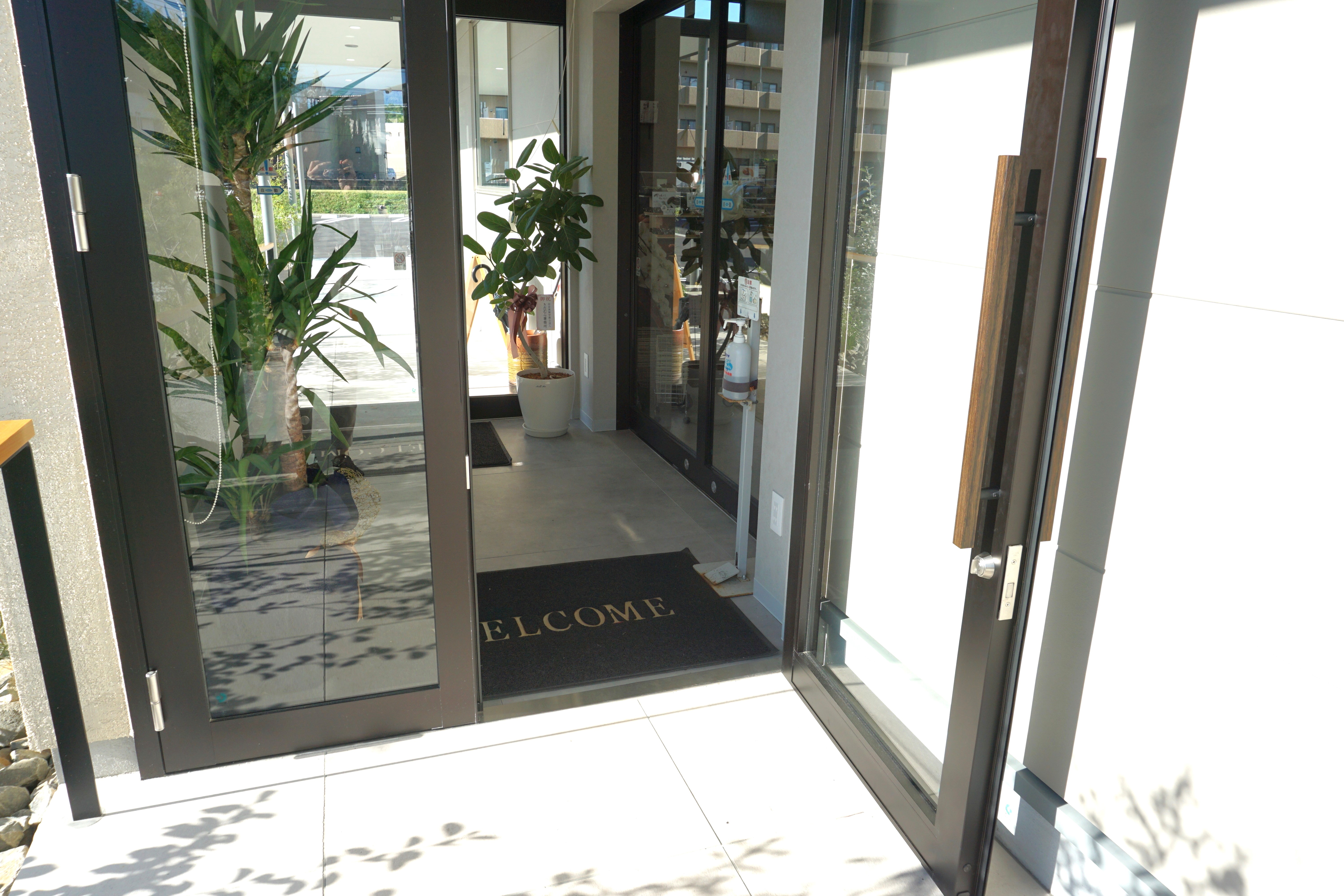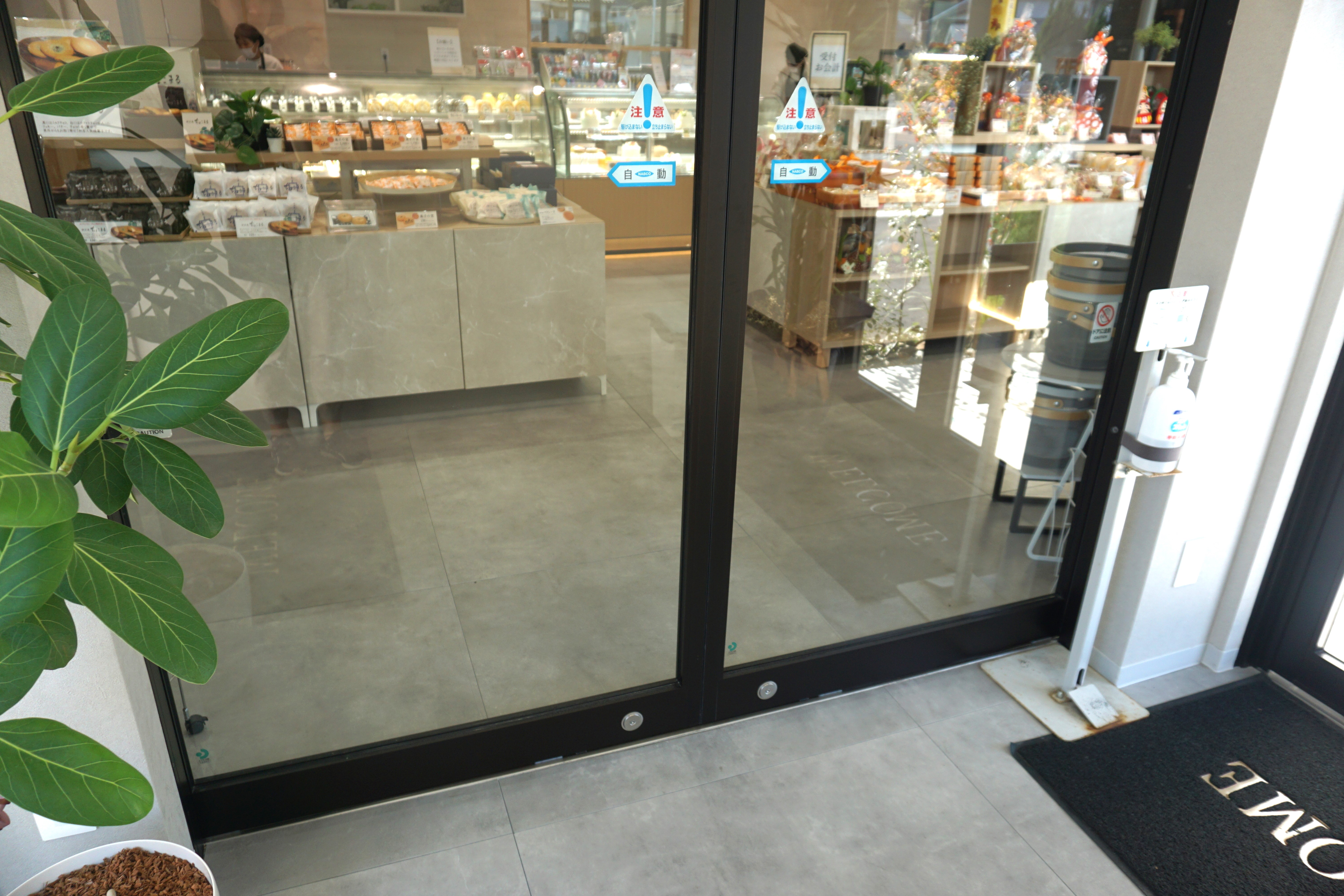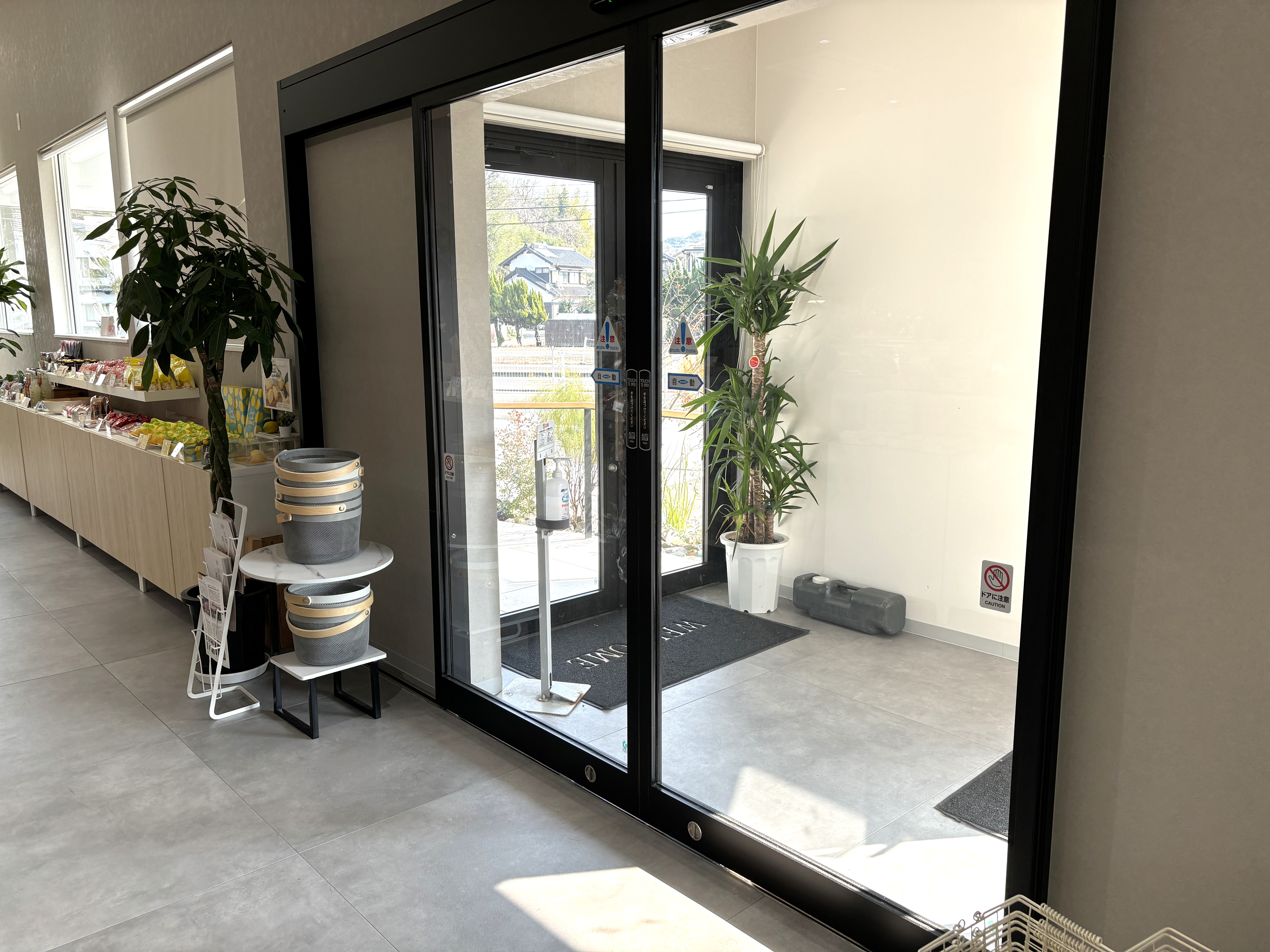 出入口は2か所あり、自動ドアと手動の開き戸です。