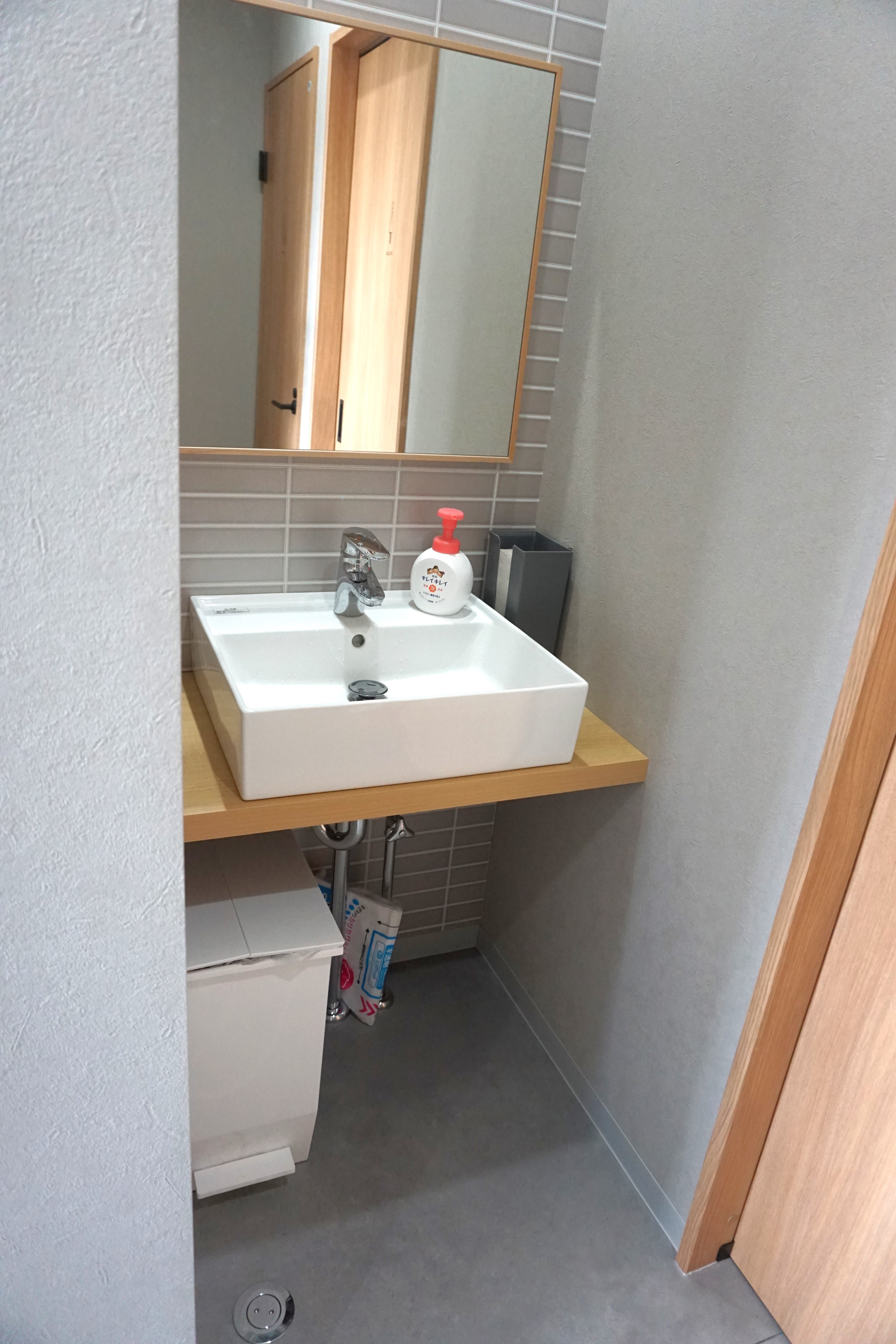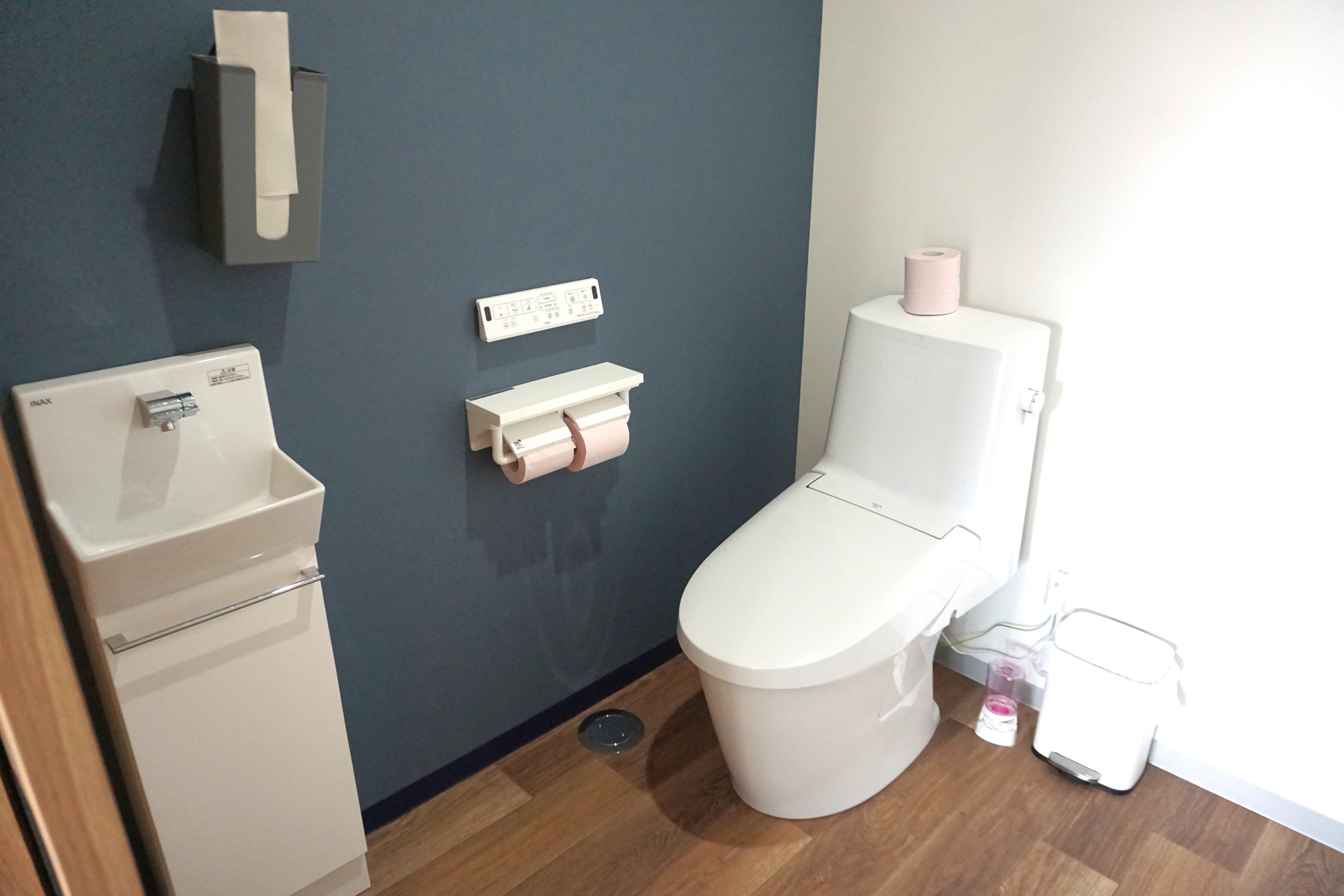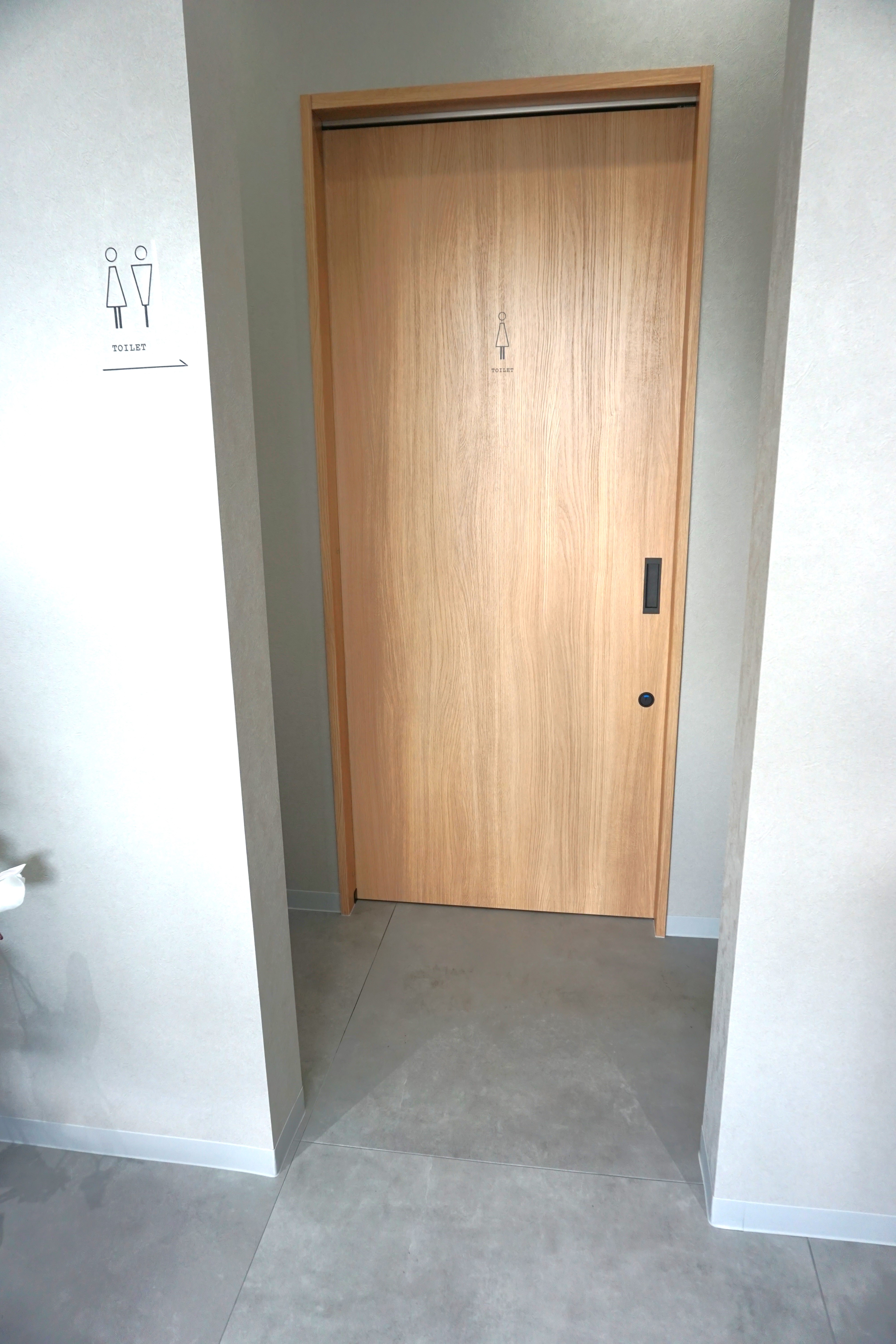 店内に女性用トイレと男女共用トイレがあります。どちらも出入口に段差なく、女性用トイレは広いので、ベビーカーと一緒に入ることができます。