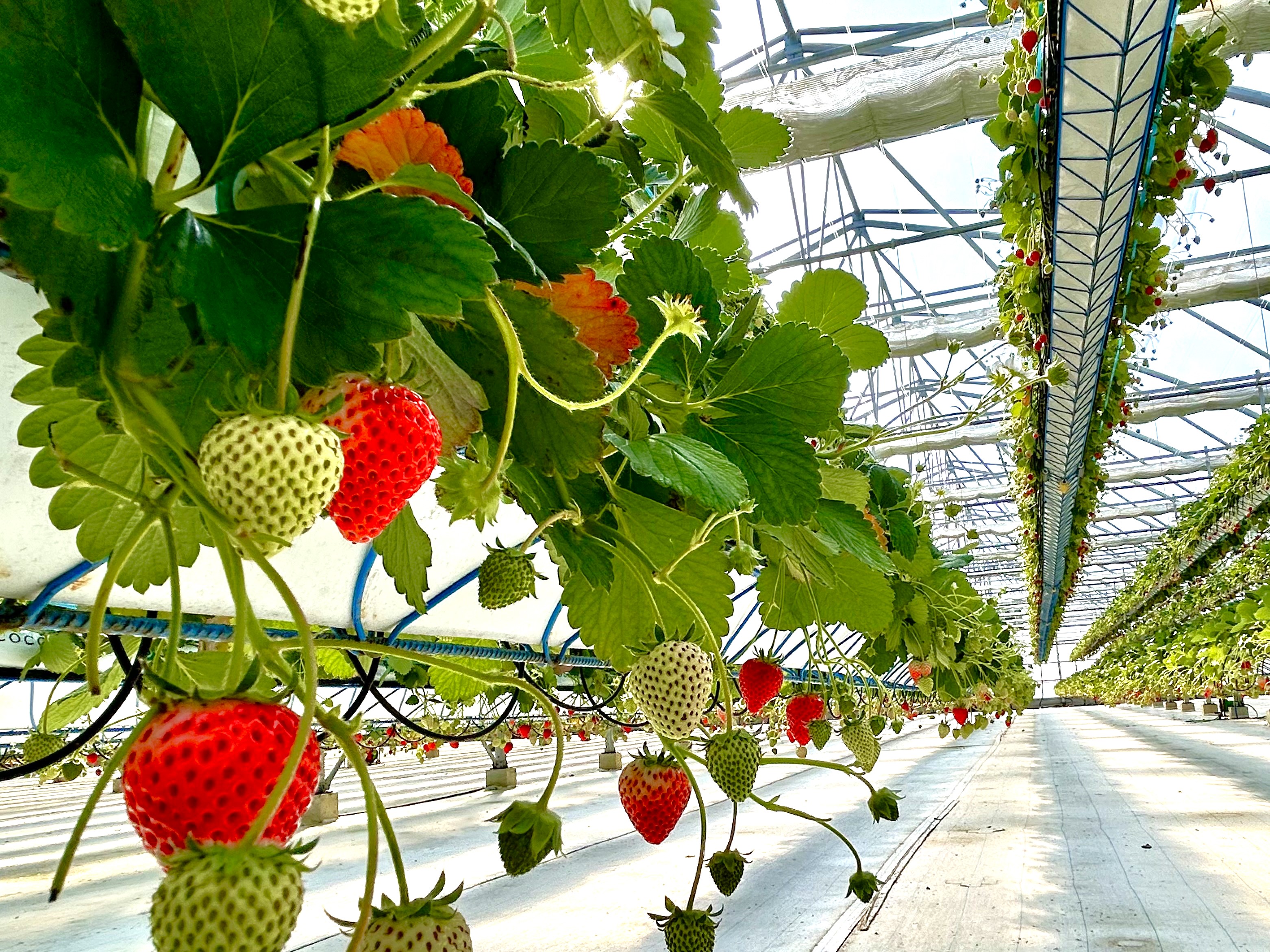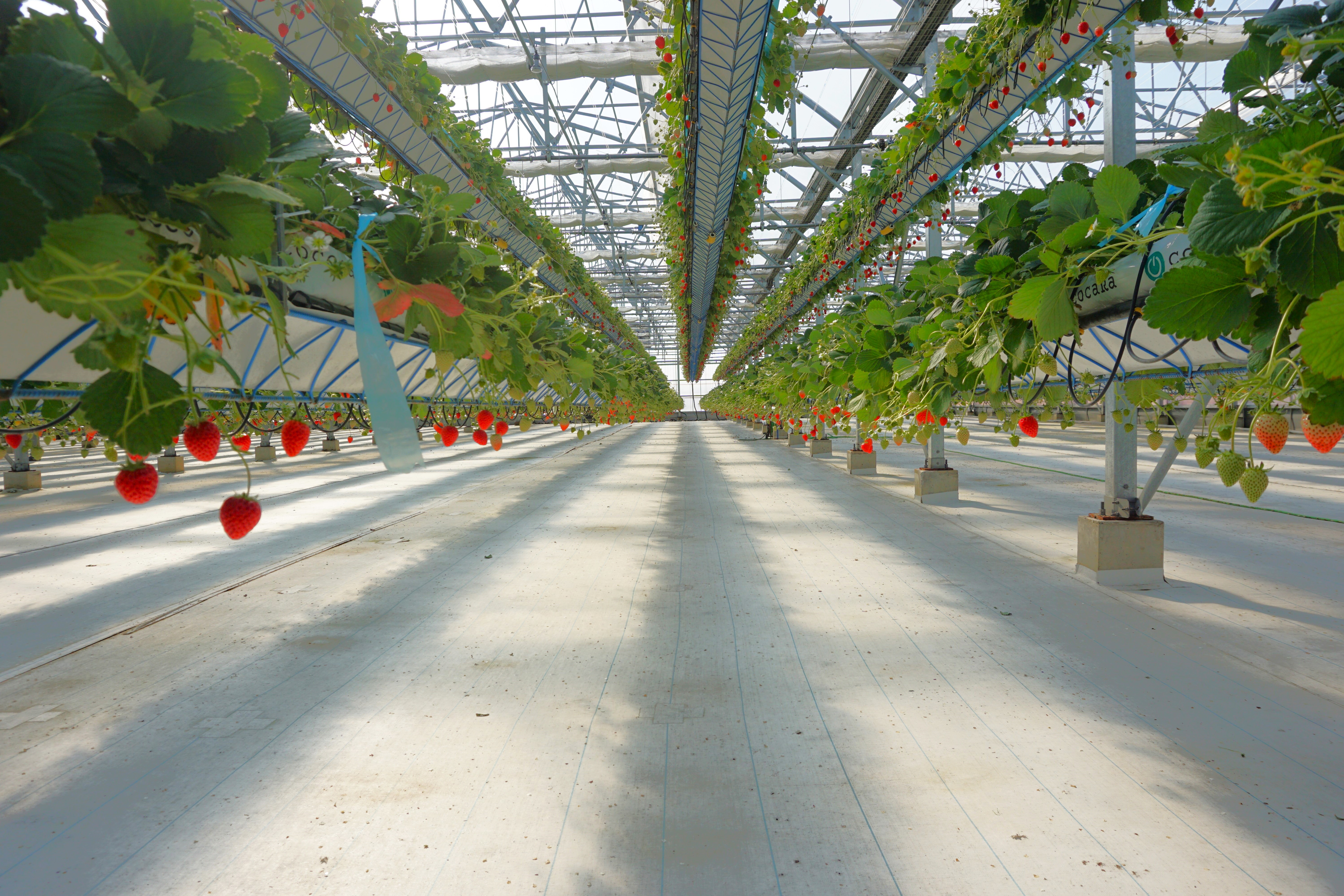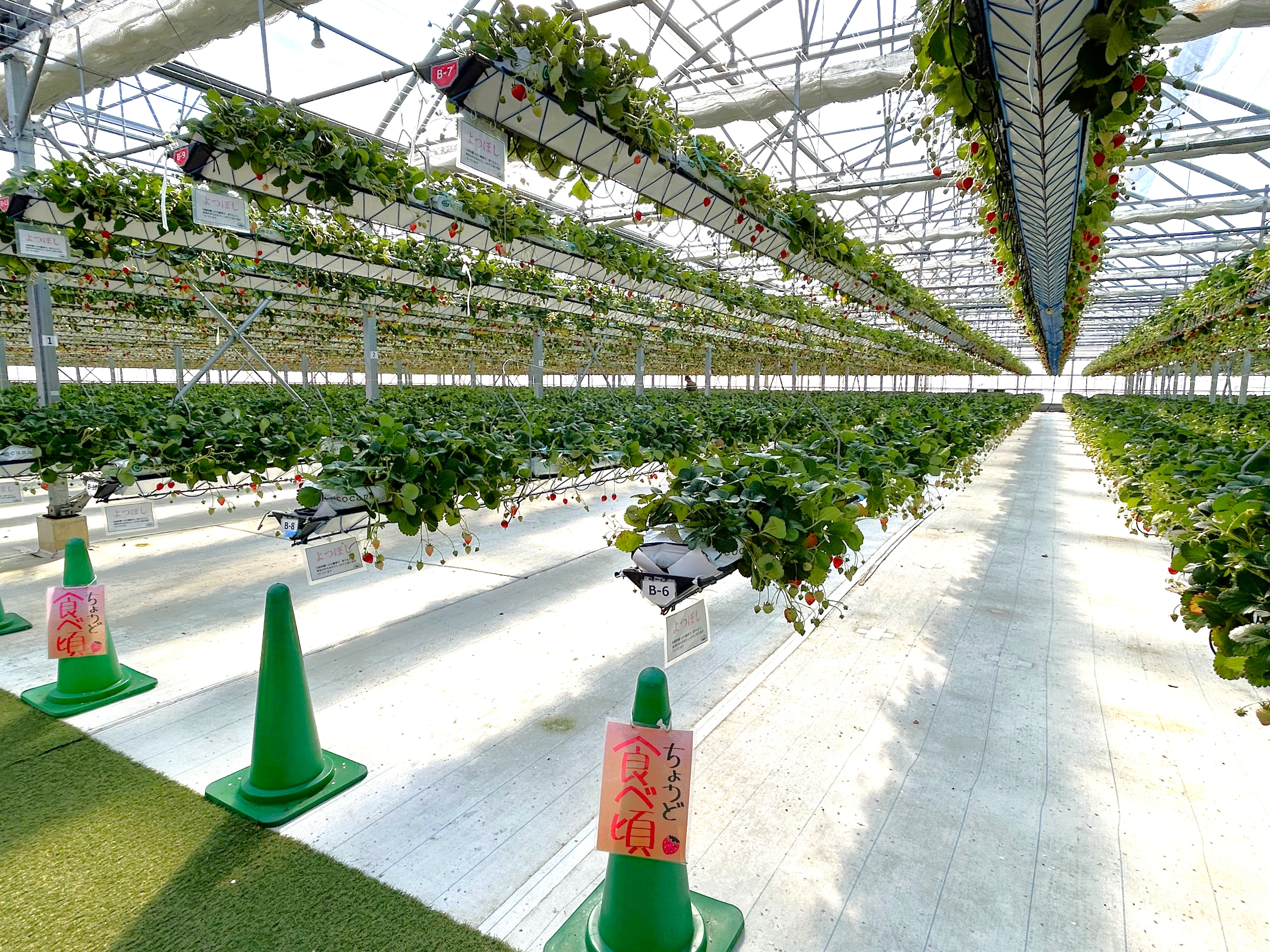 いちご狩りのハウスは出入口にスロープがあり、ハウス内もフラットです。