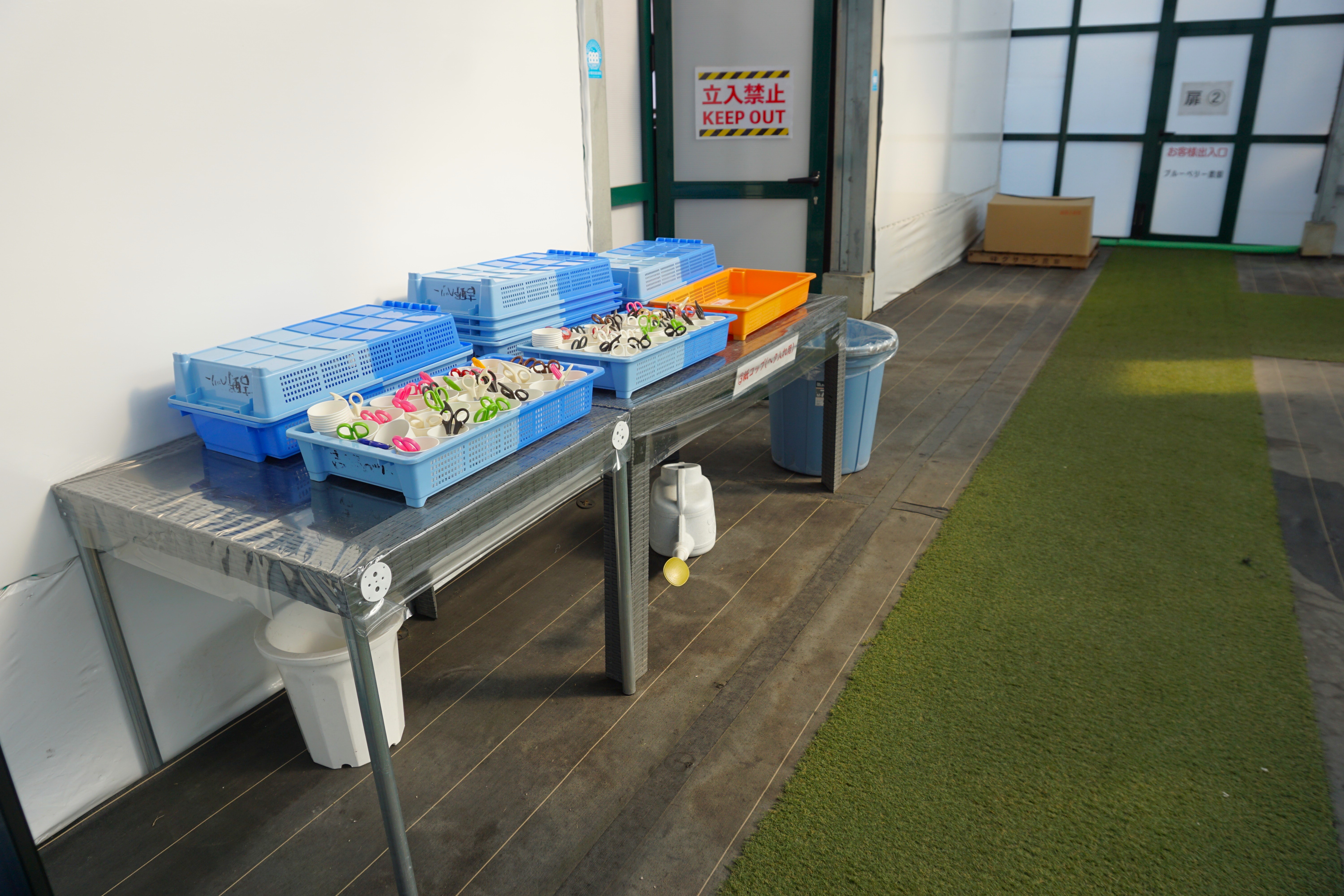 ハウスの中は土の地面ではなく、フラットになっているので、立ったまま摘み取りができます。