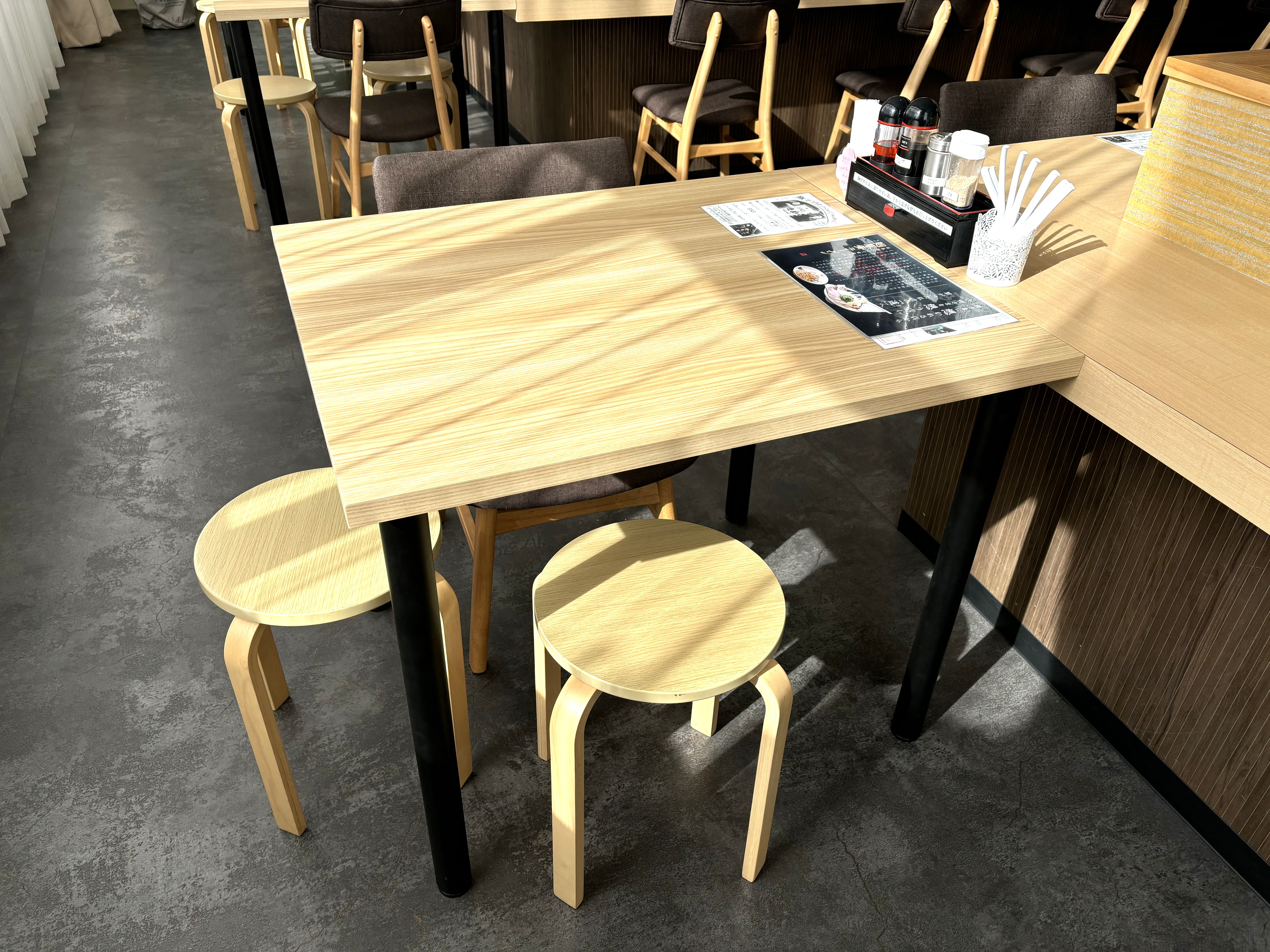 店内は主にカウンター席ですが、3人席のテーブル席もあります。