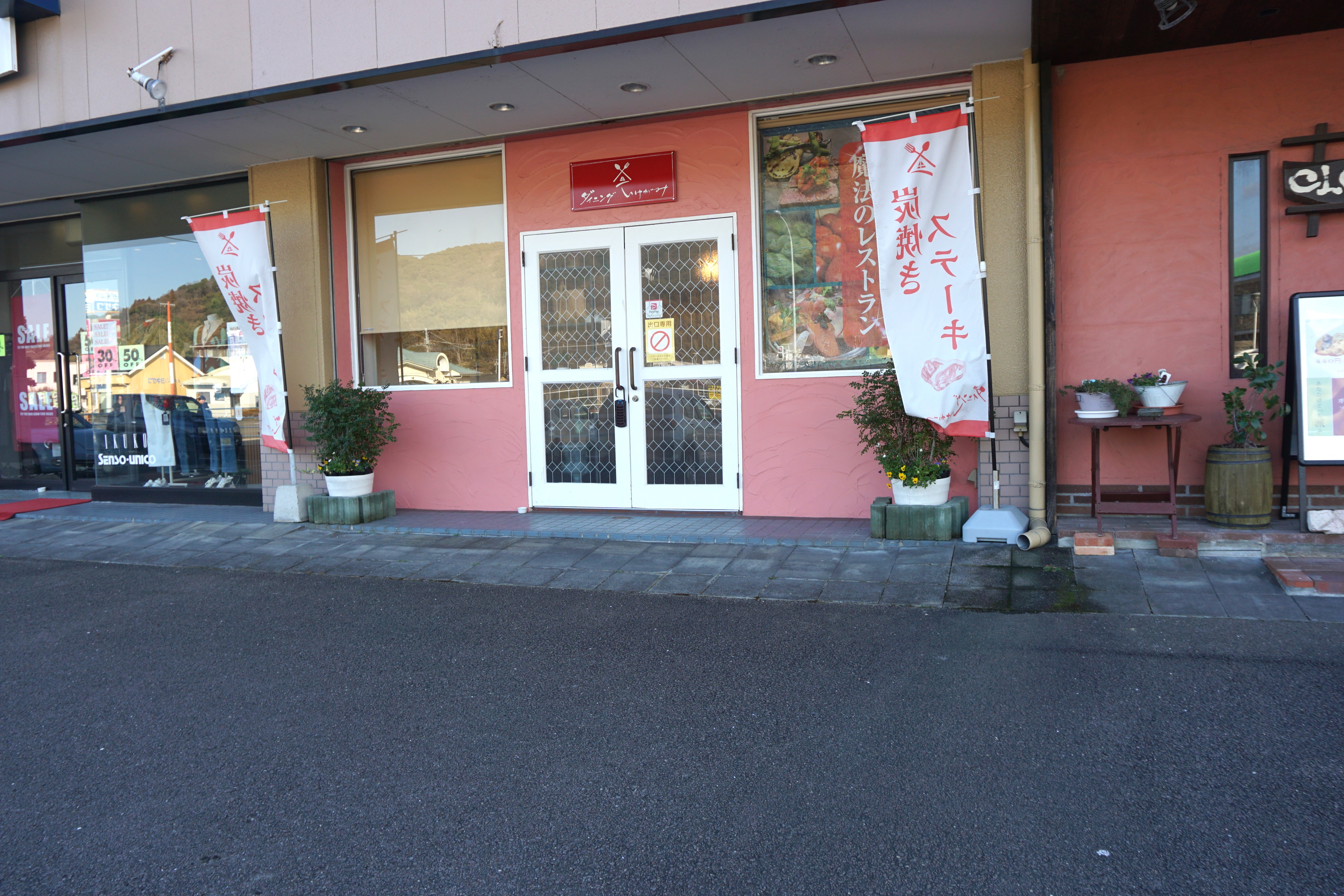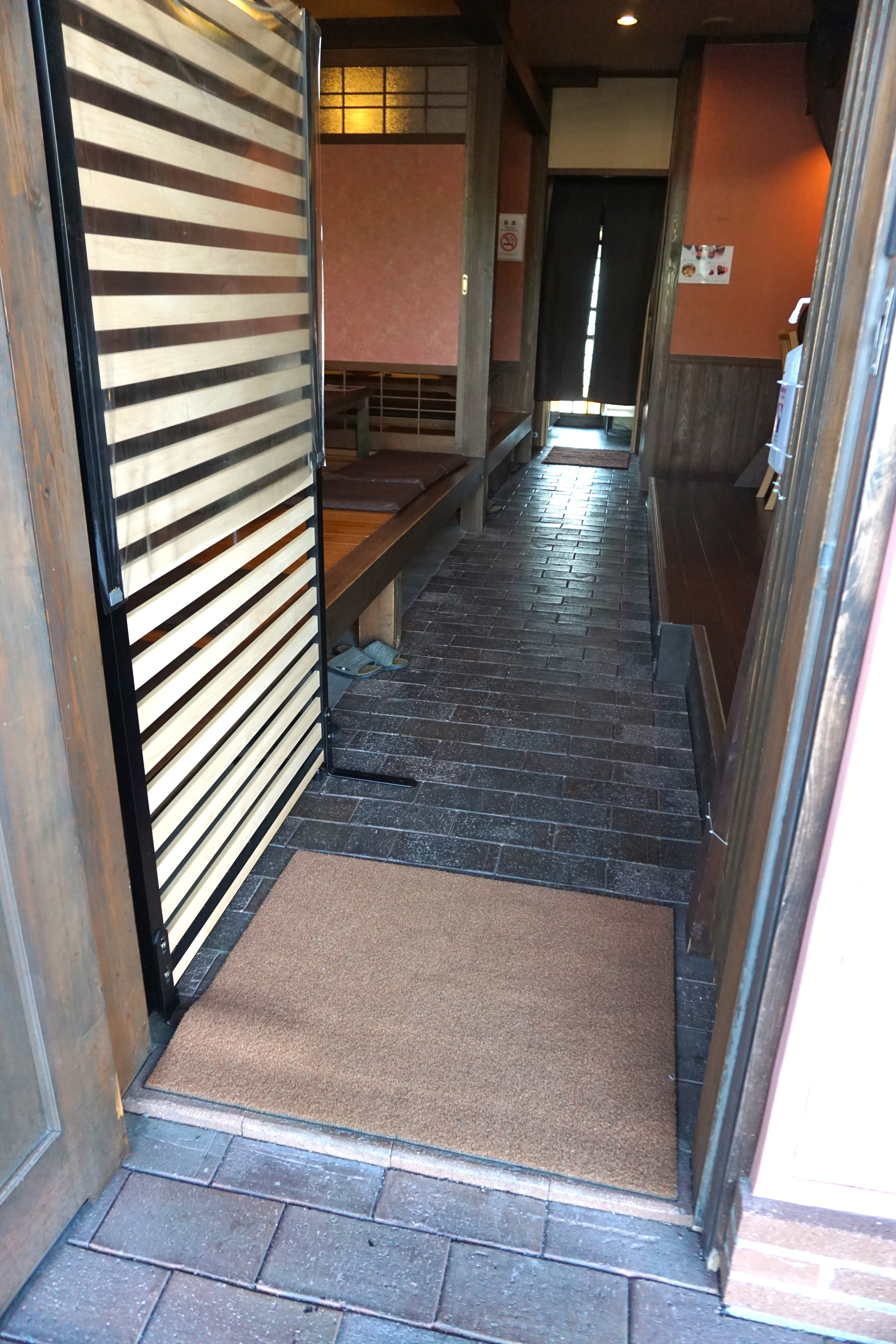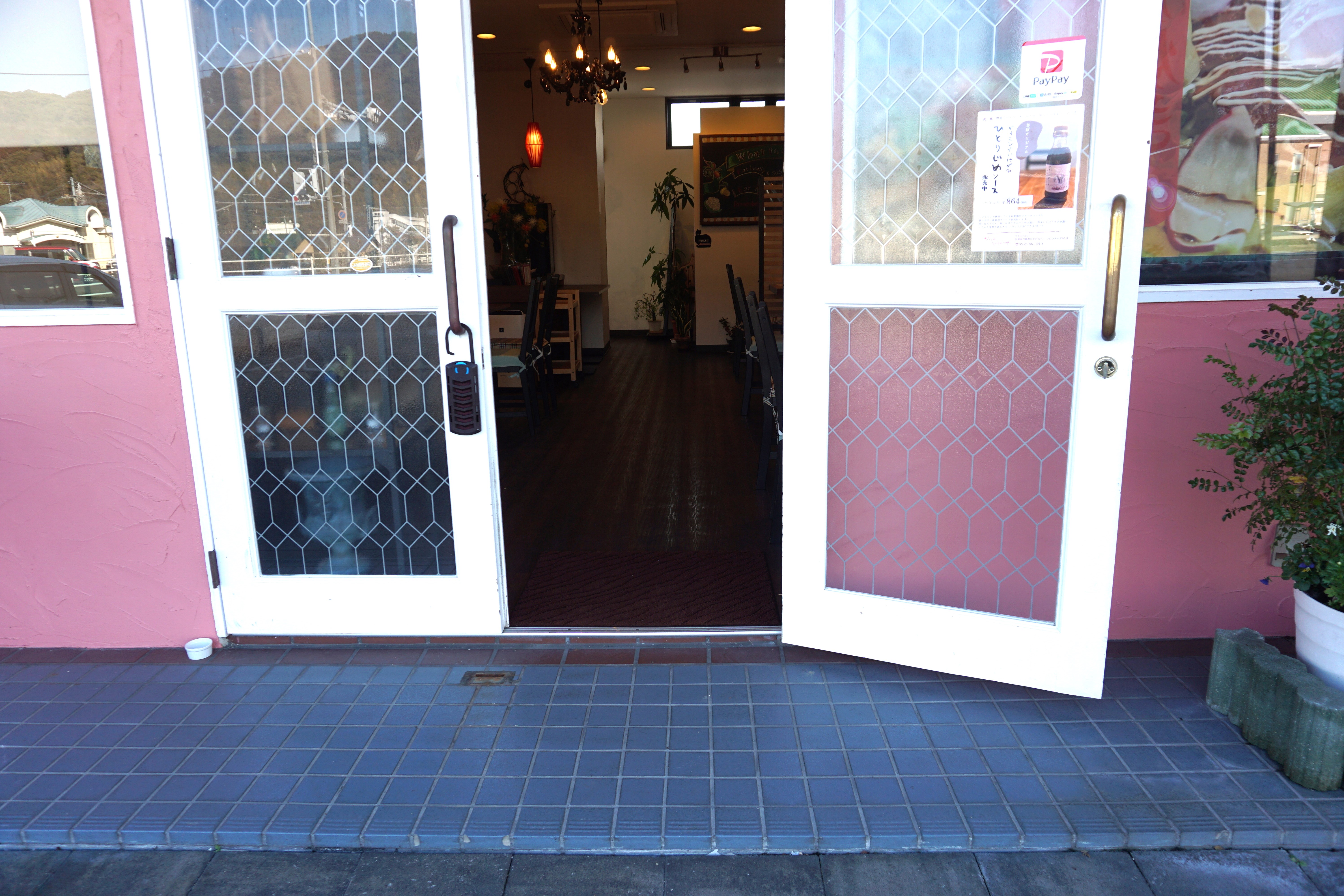 通常は茶色のドアの出入口①からご入店ください
