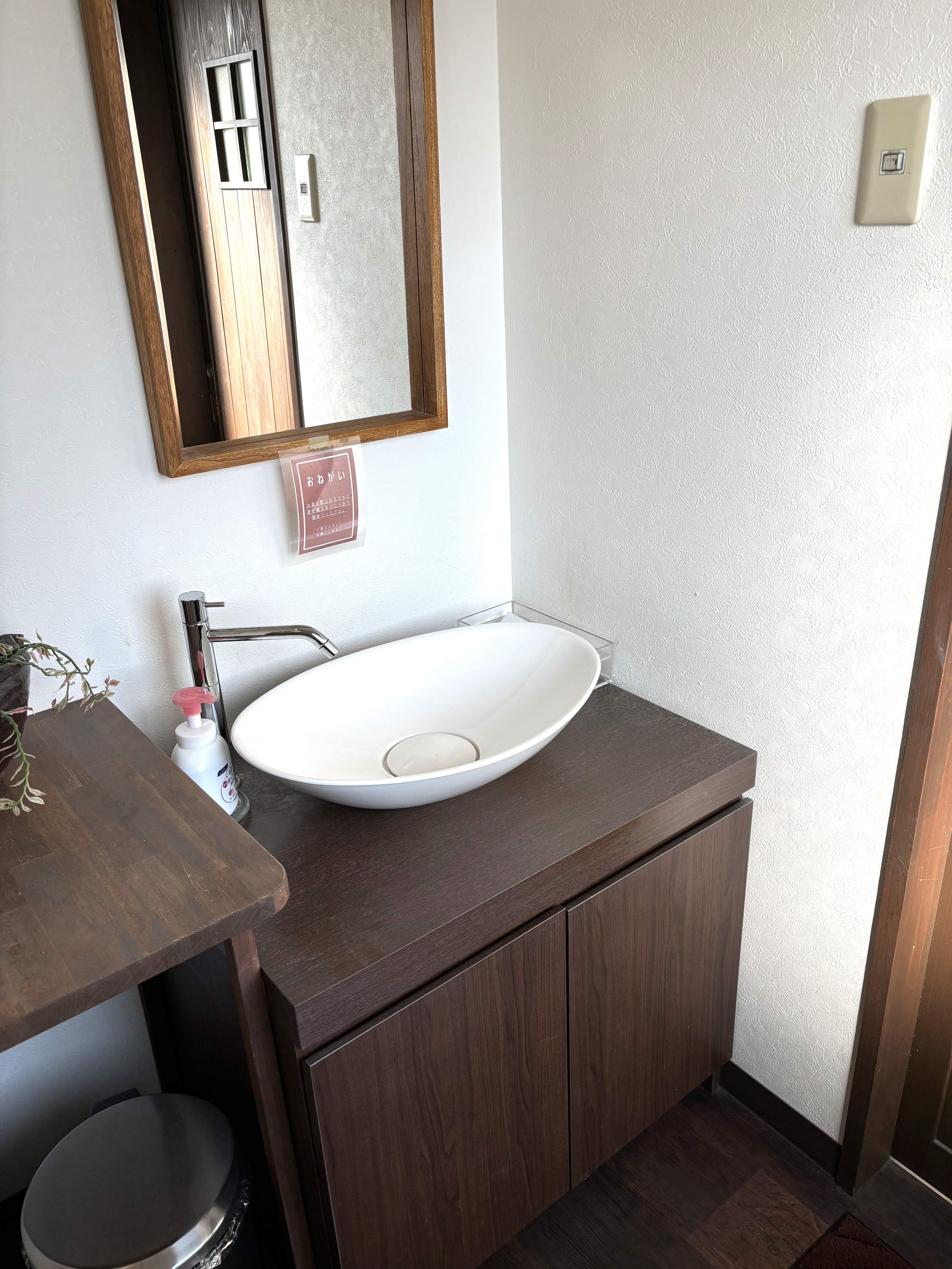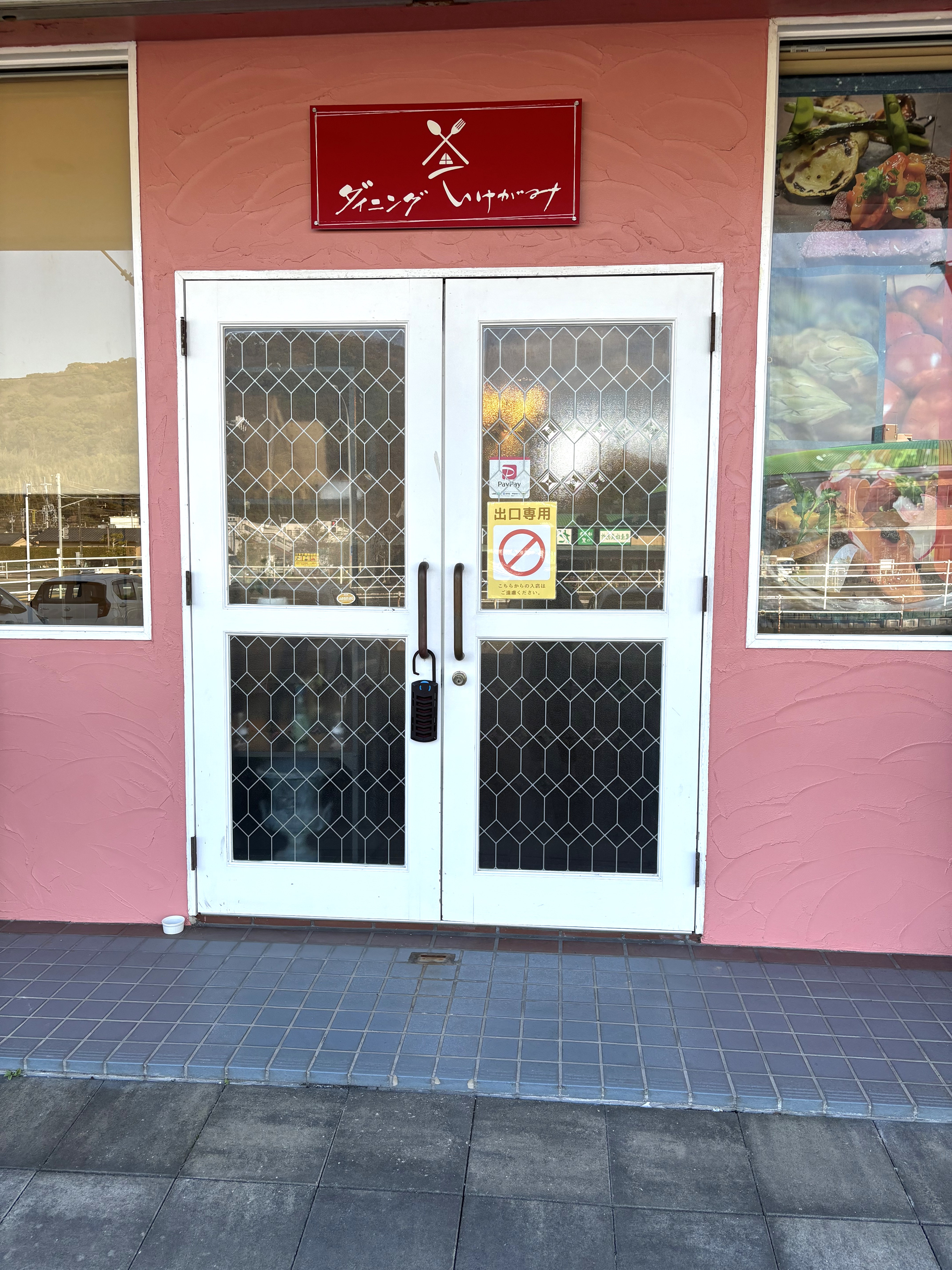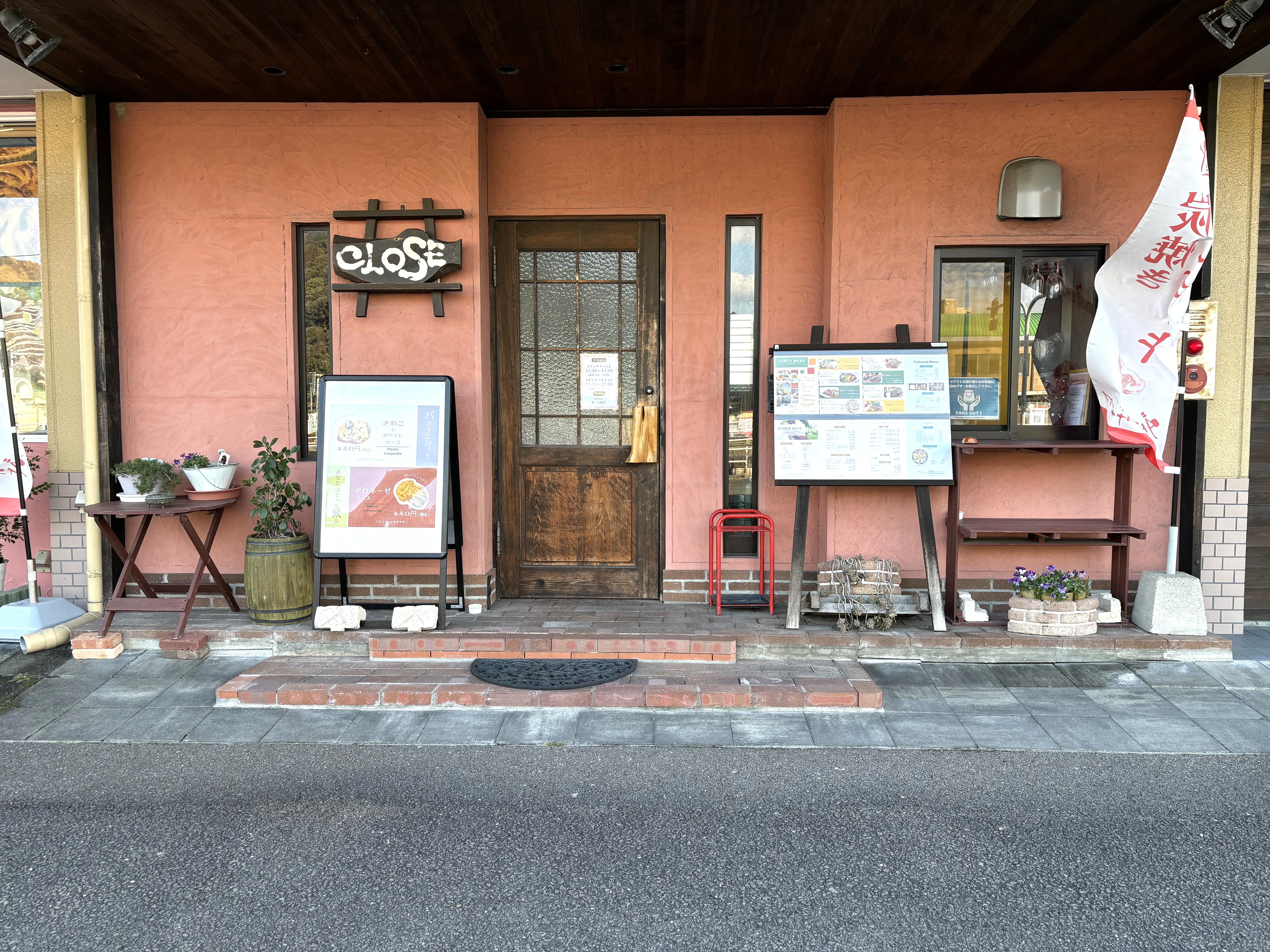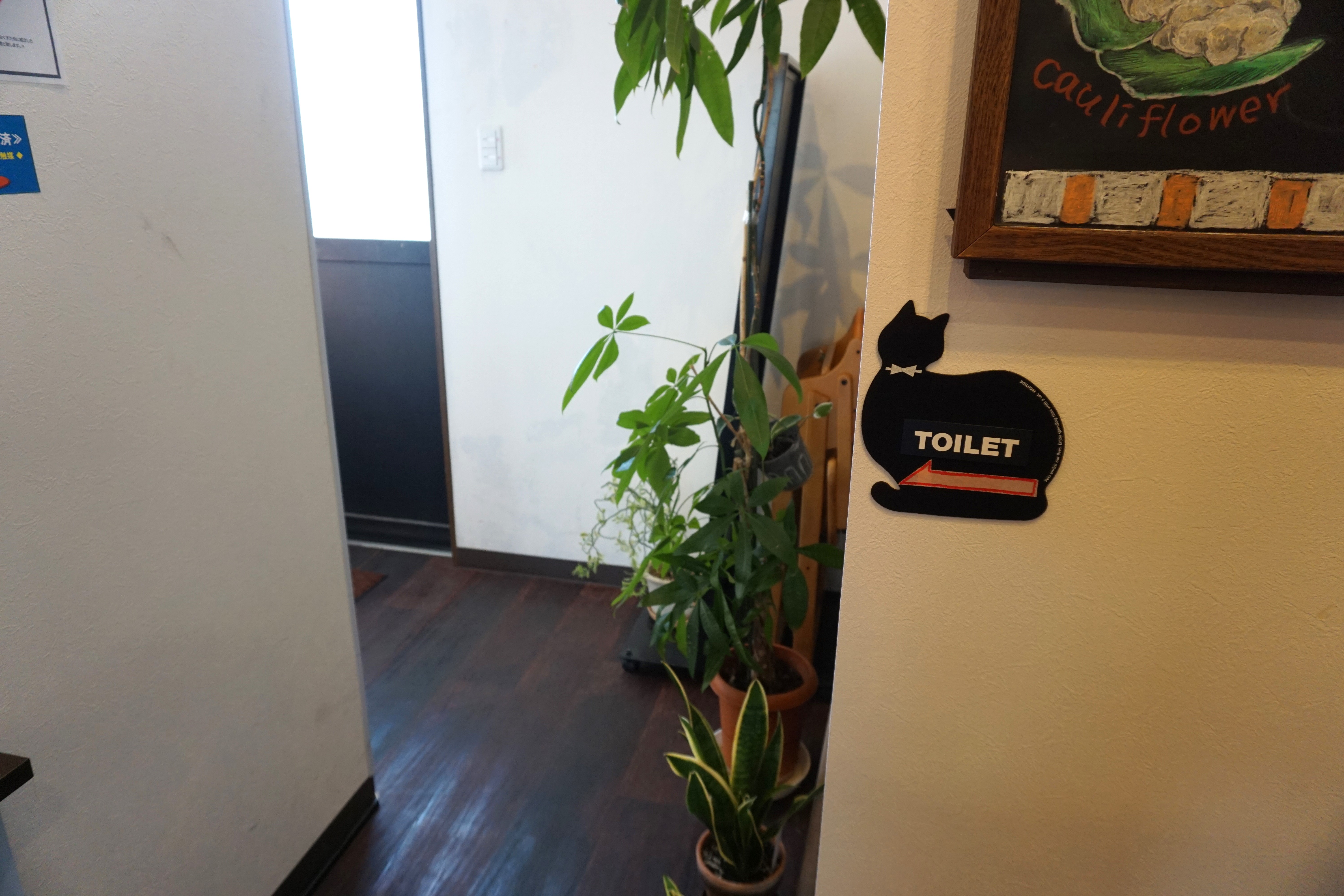 通常は茶色のドアの出入口①からご入店ください
