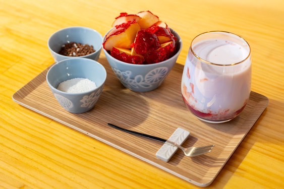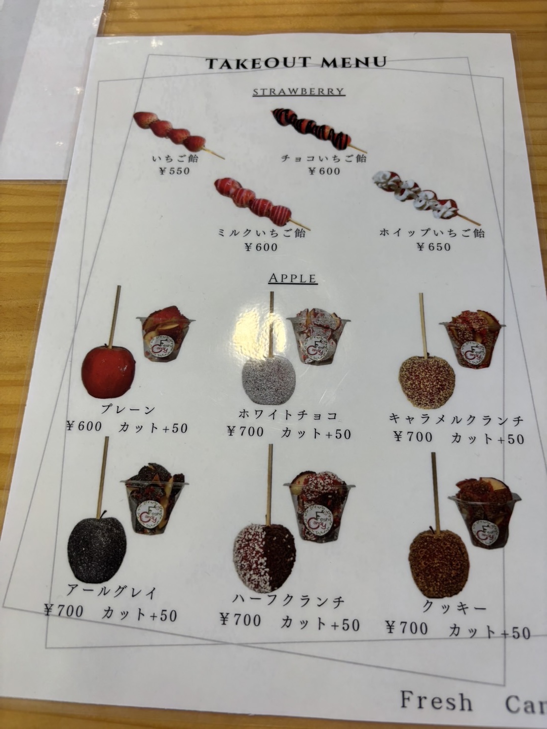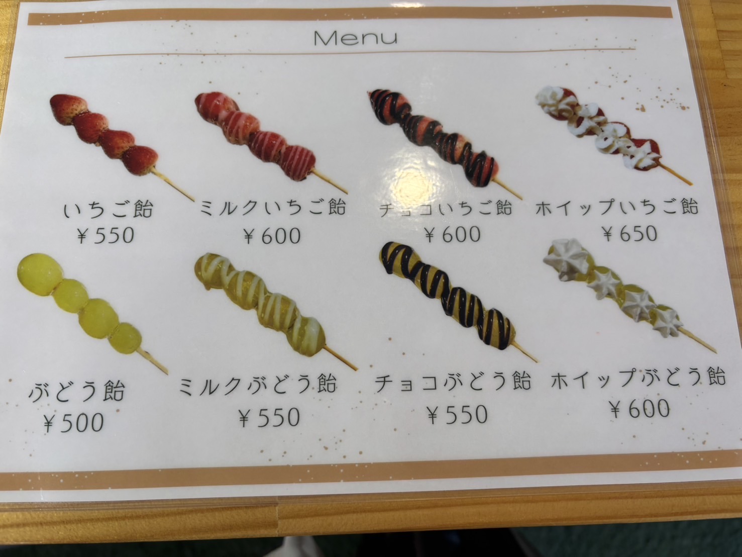 佐賀駅から歩いて3分の場所に位置するフルーツ飴専門店。ドリンクも用意しており、ちょっとしたカフェタイムにも。豊富な種類のフルーツ飴を取り揃えており、季節によって違うフルーツを使ったり、アレンジしたフルーツ飴を販売したりしています。