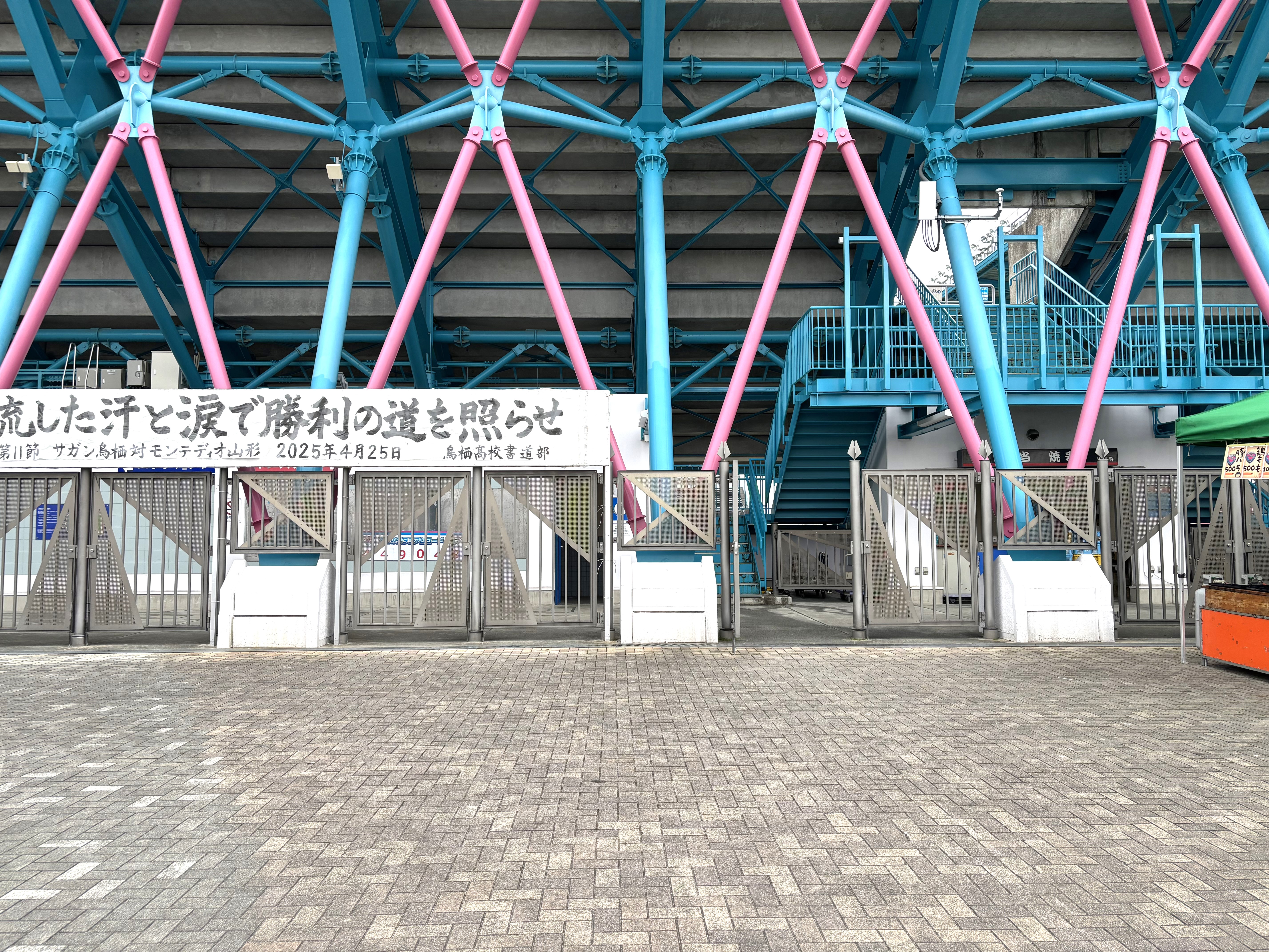 スタンドの屋根を支える鋭く尖った鉄骨の柱は、弥生の里といわれる鳥栖市から出土した弥生時代の細形銅剣をモチーフにデザインされています。