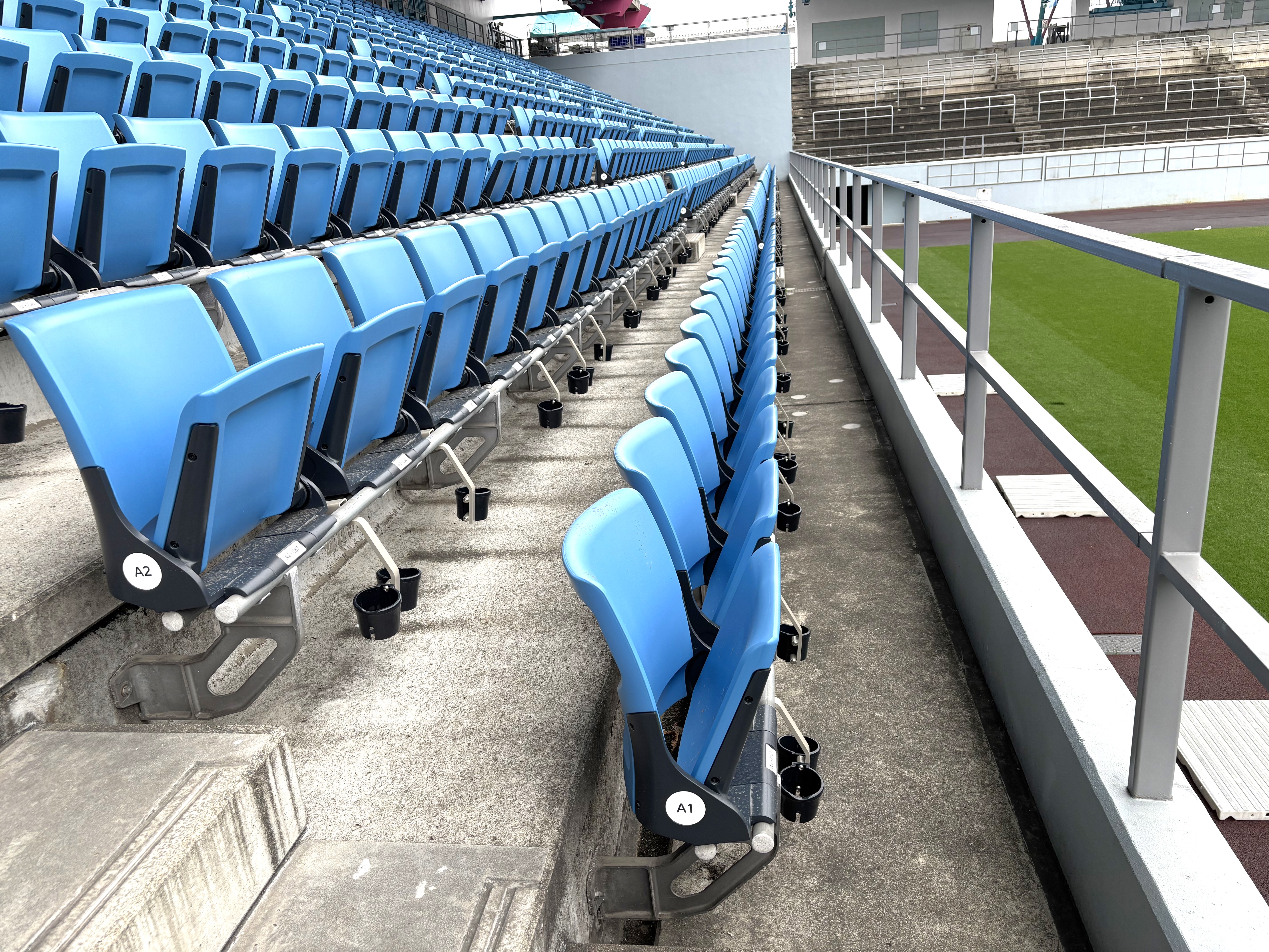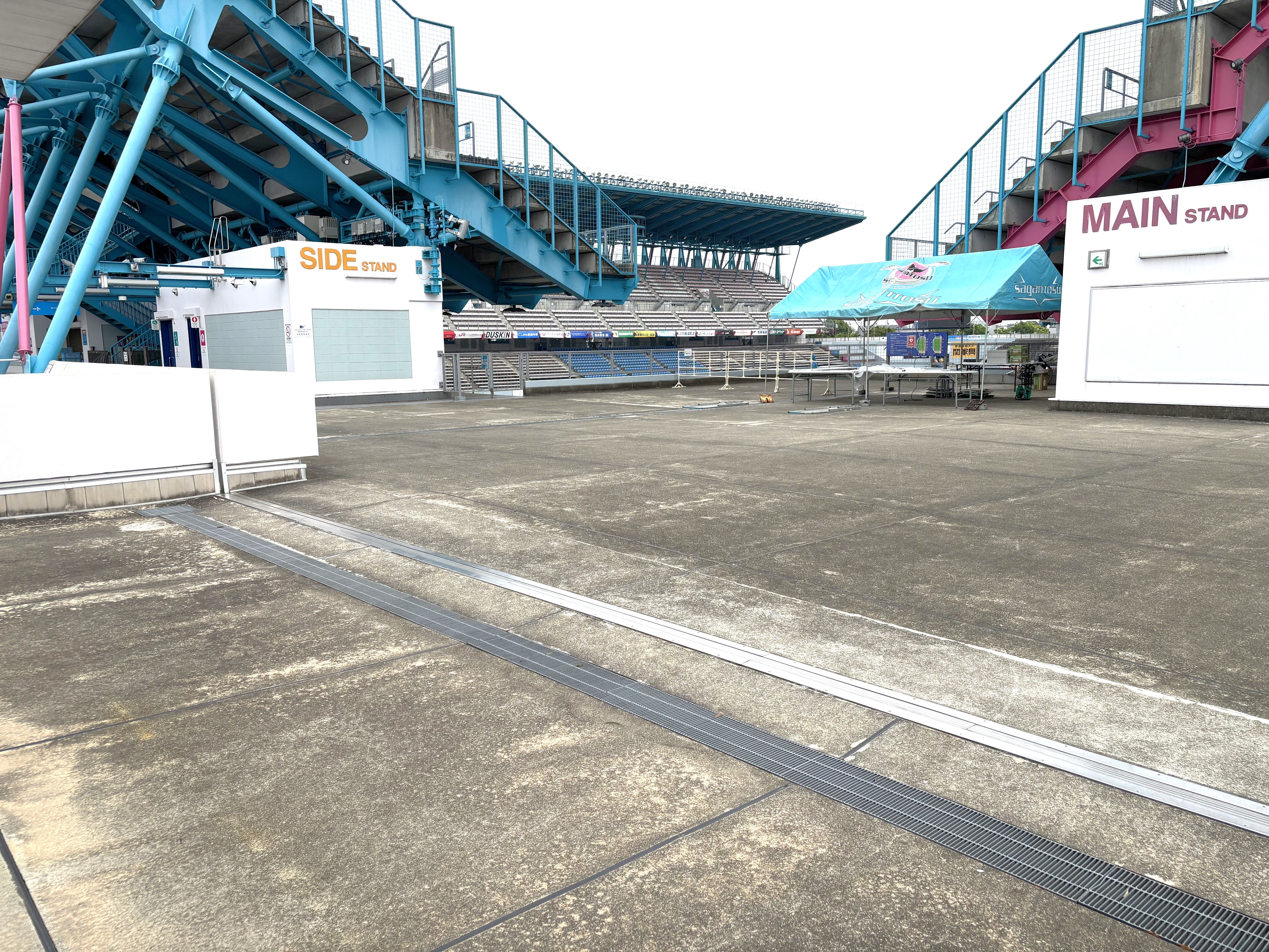国内最初の純鉄骨造りの観覧スタンドを持ち、足がすくみそうなほど急峻なスタンド(傾斜角度約40度)は選手の息遣いが聞こえそうな程ピッチを近くに感じさせ、どの席からも観戦しやすい構造となっています。
