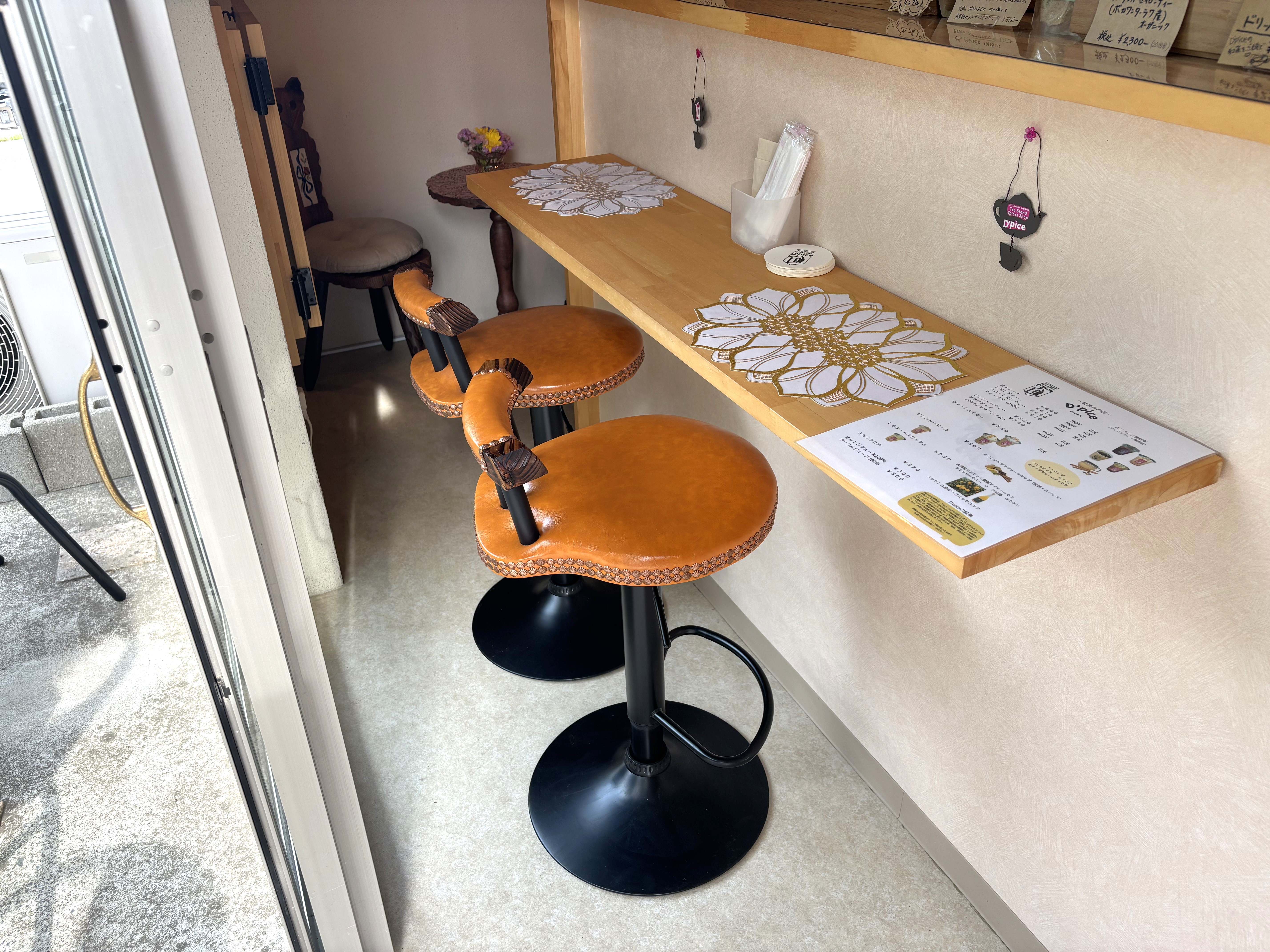 店舗出入口ヨコスペースに軽が1台、砂利スペースに4台停めることができます