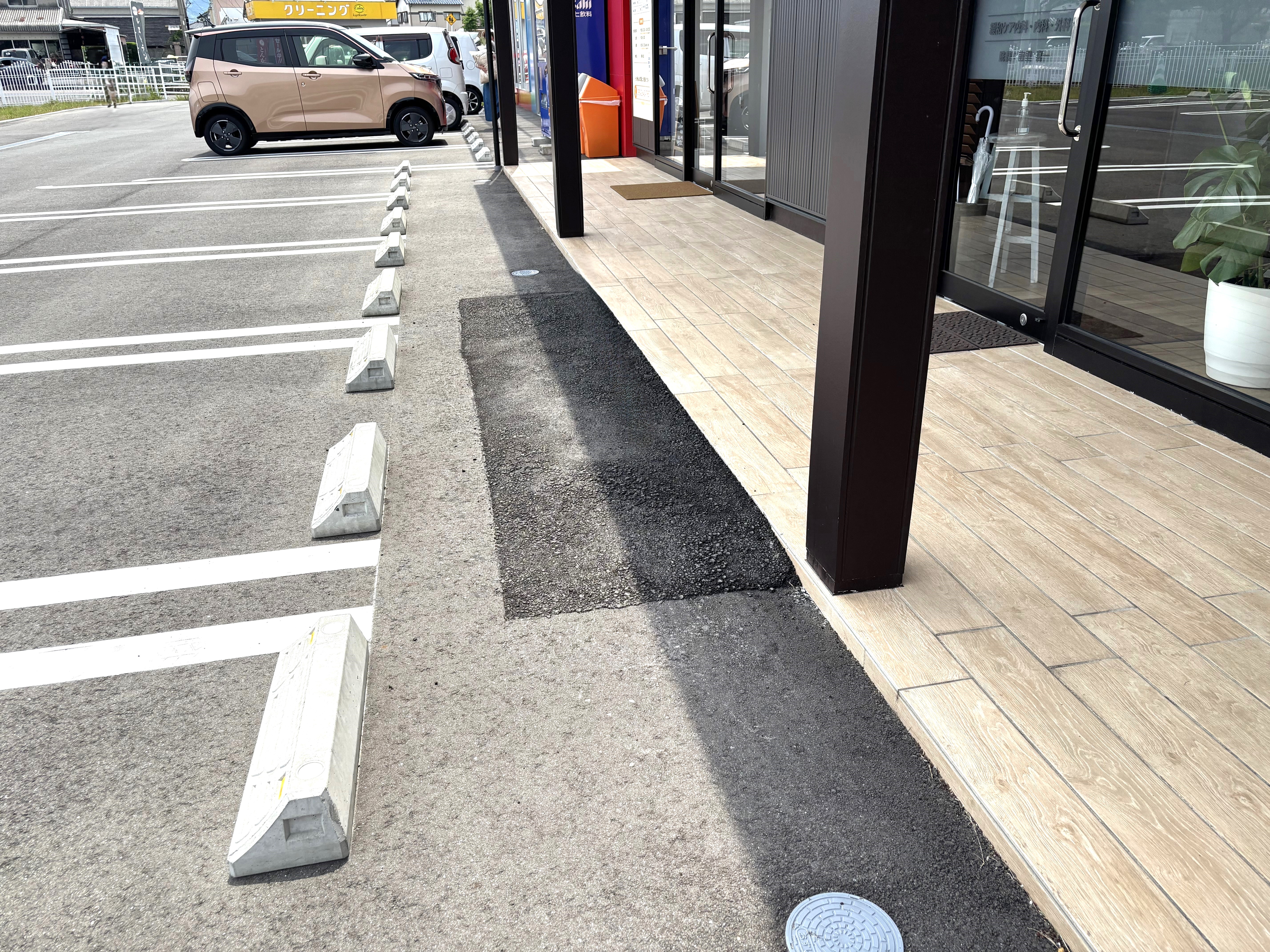 店舗前は段差がありますが、お隣の店舗前から段差なく入店できます