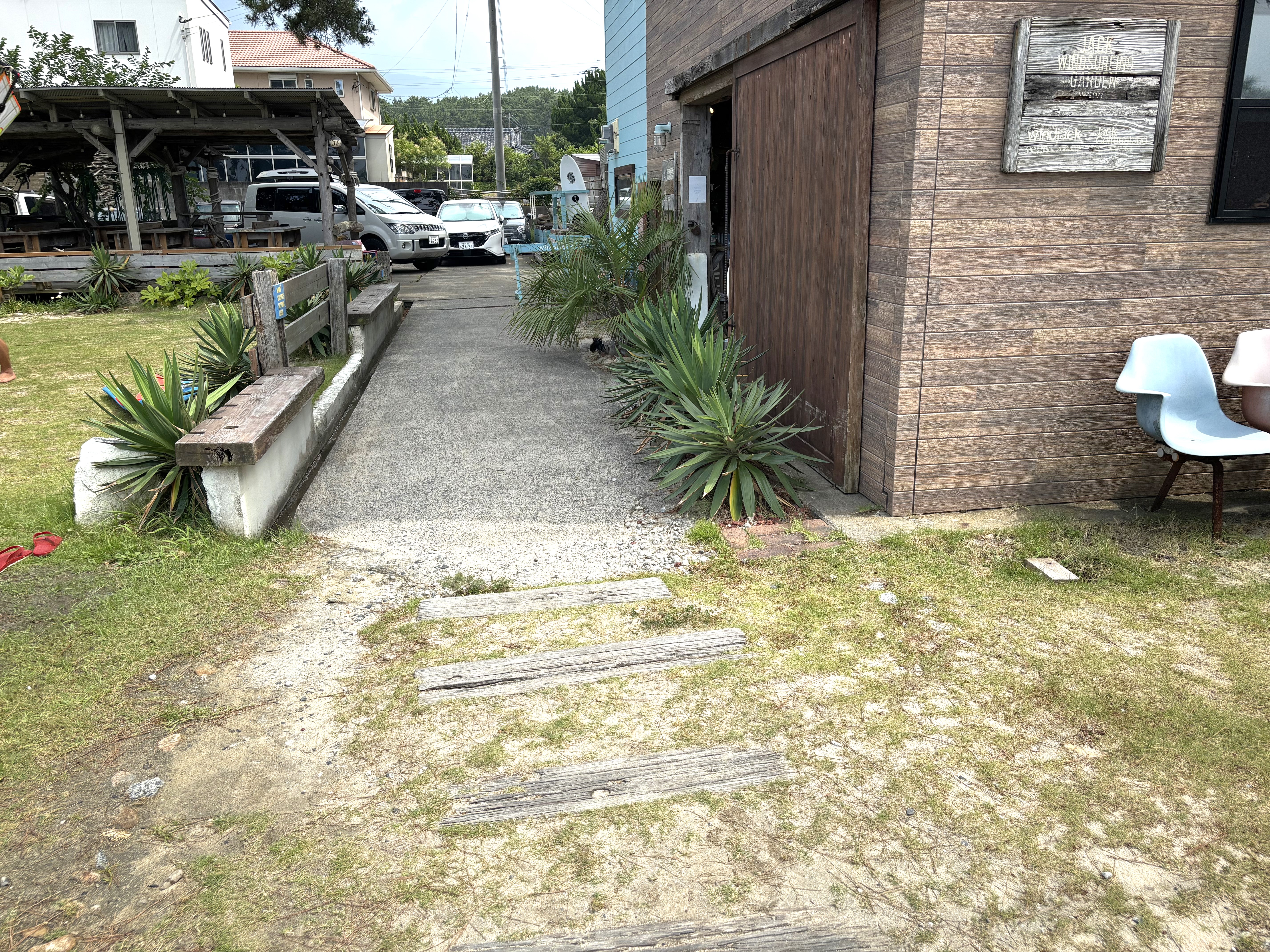 店舗前道路挟んだ、海沿いのスペースをご利用ください