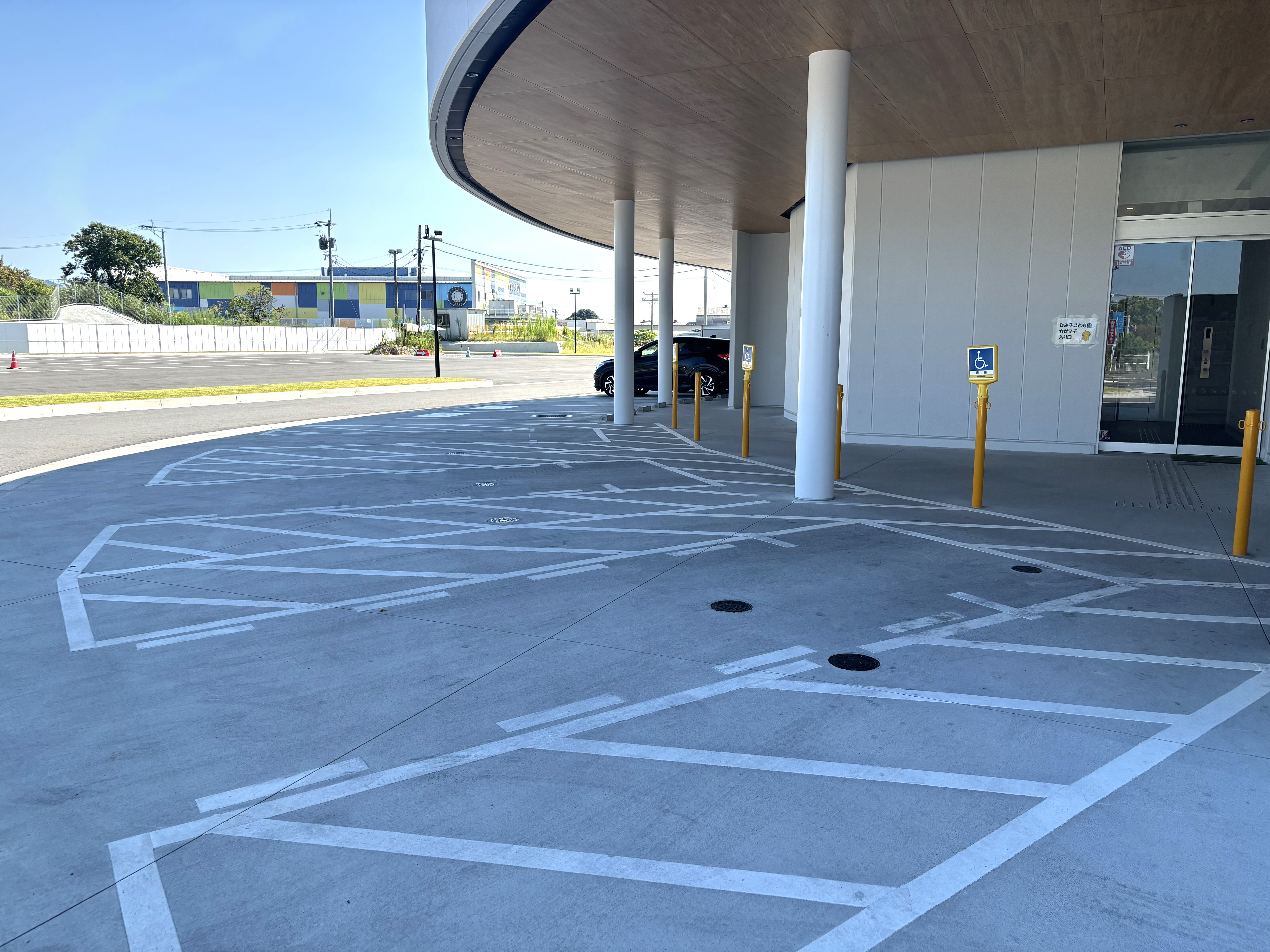 身障者用駐車場は道路から入って左手側の建物横にあります