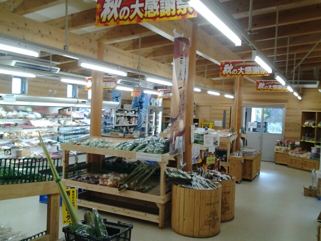 店内は町内の食材をふんだんに使用した温もりある施設季節の野菜と山菜、お米等を販売しています。