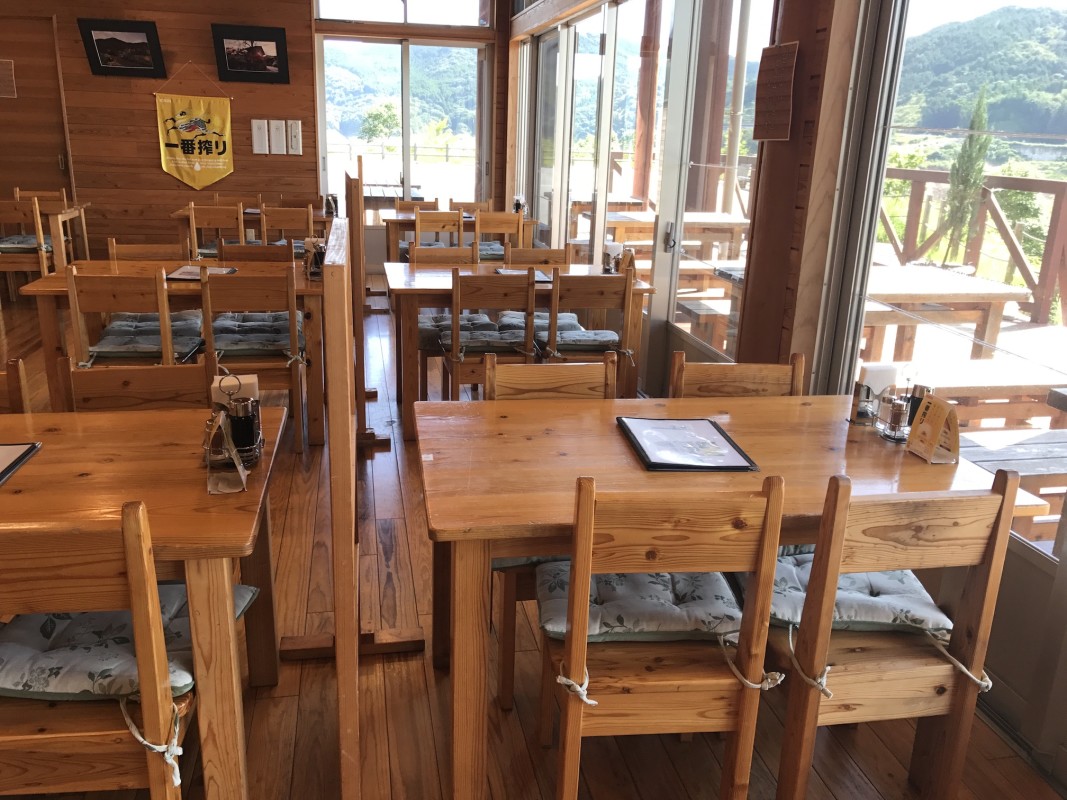 裏手に回ると、広々とした駐車場がありました。 とにかく絶景♪ 景色を見ながらの深呼吸はすごく気持ち良かったです。 店内には特産品や、農作物にお惣菜も豊富にありました。 店内から引き戸を開けると、デッキに出られるようになっていて、アイスやコーヒーを飲みながら・・・気持ちいいだろうなー。 レストランも併設されていたので、今度は食べてみようと思います♪