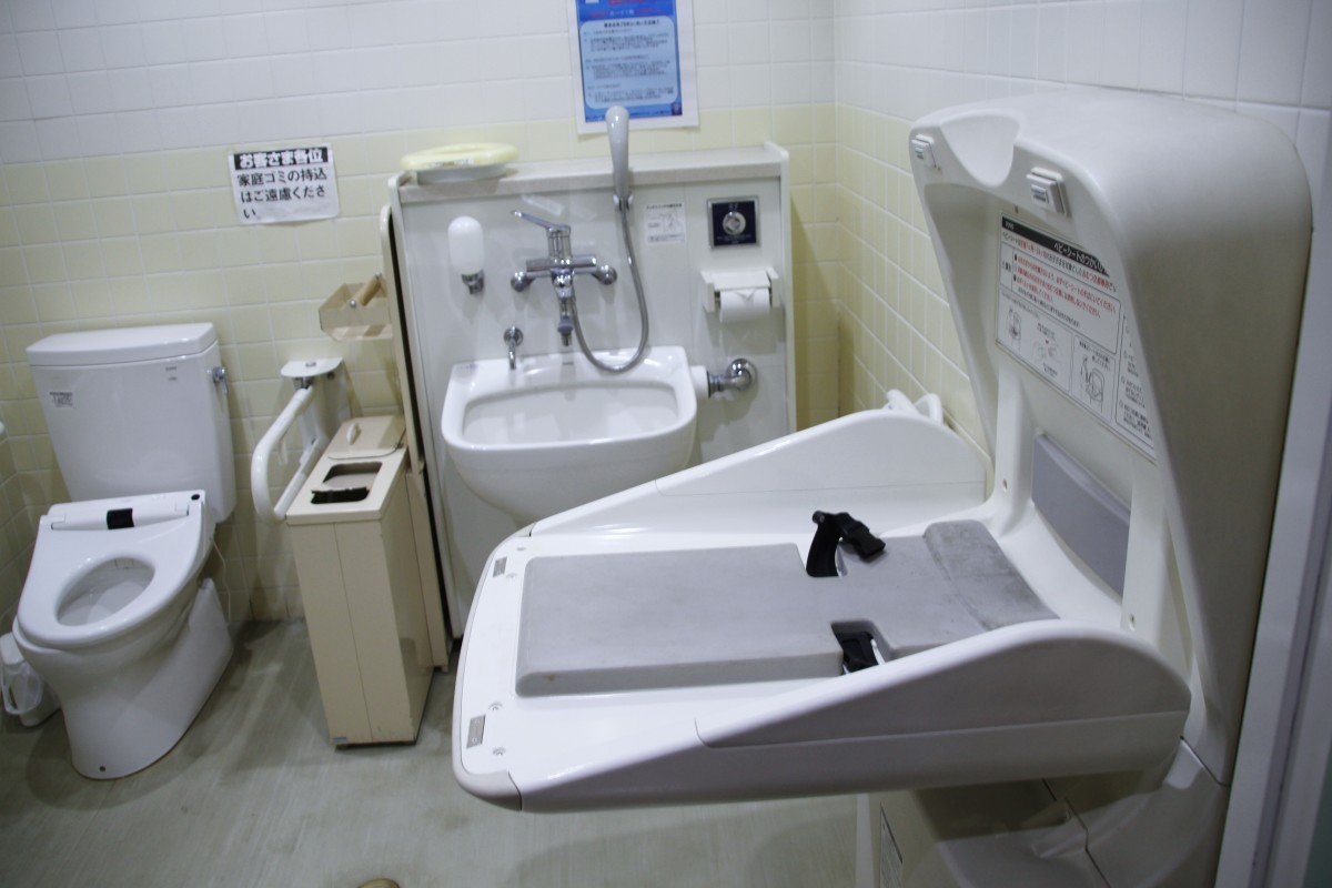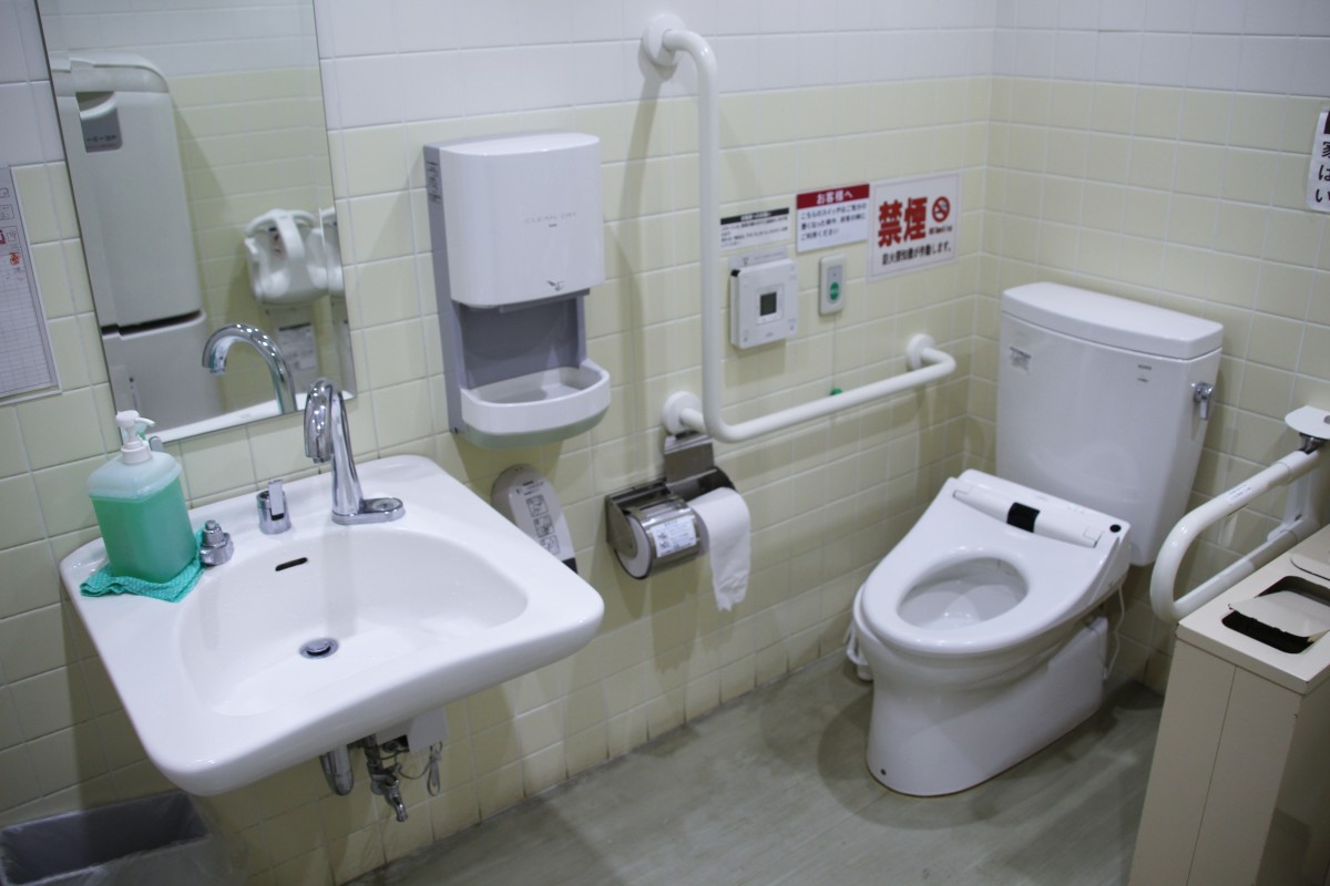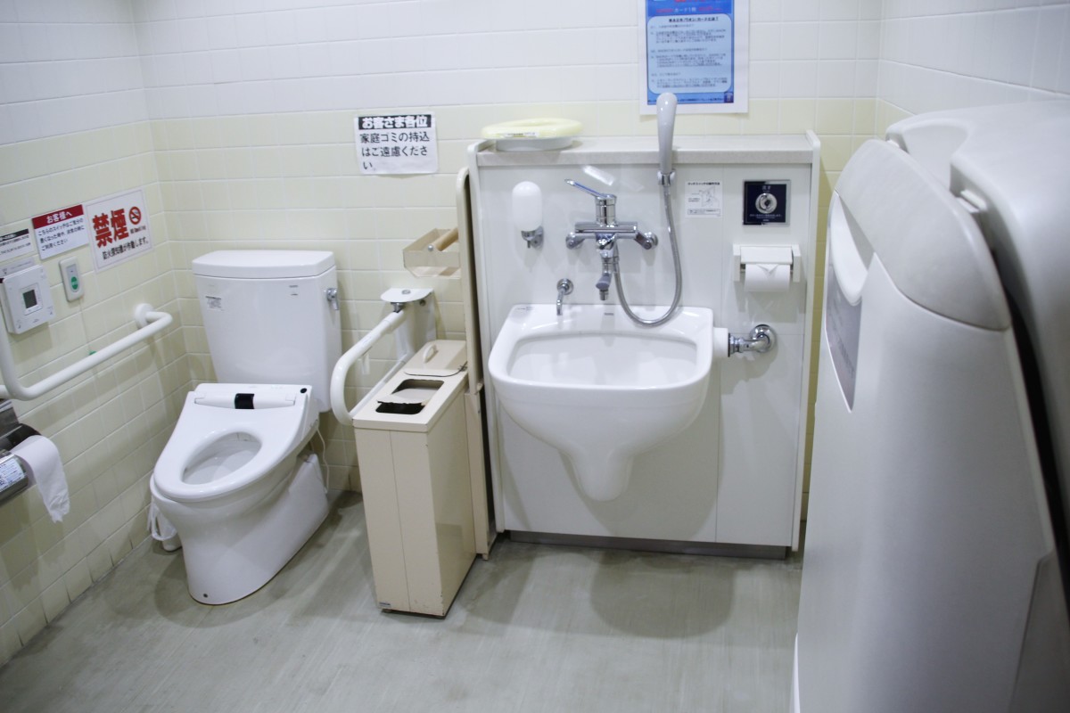 バリアフリートイレには、車いす対応トイレ・ベビーキープ・オムツ交換台・オスメイトがあります。