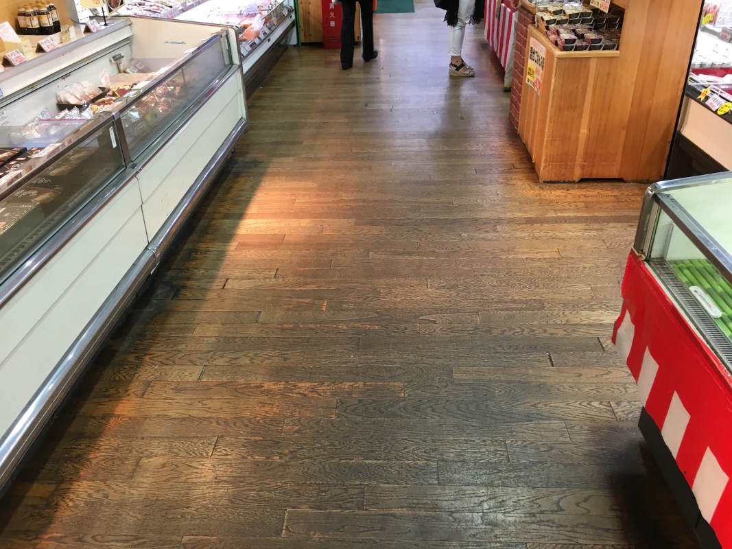 1階は、海産物やお土産品の販売を行っています。バリアフリーなつくりになっていますのでどなた様でもお買い物をお楽しみください。