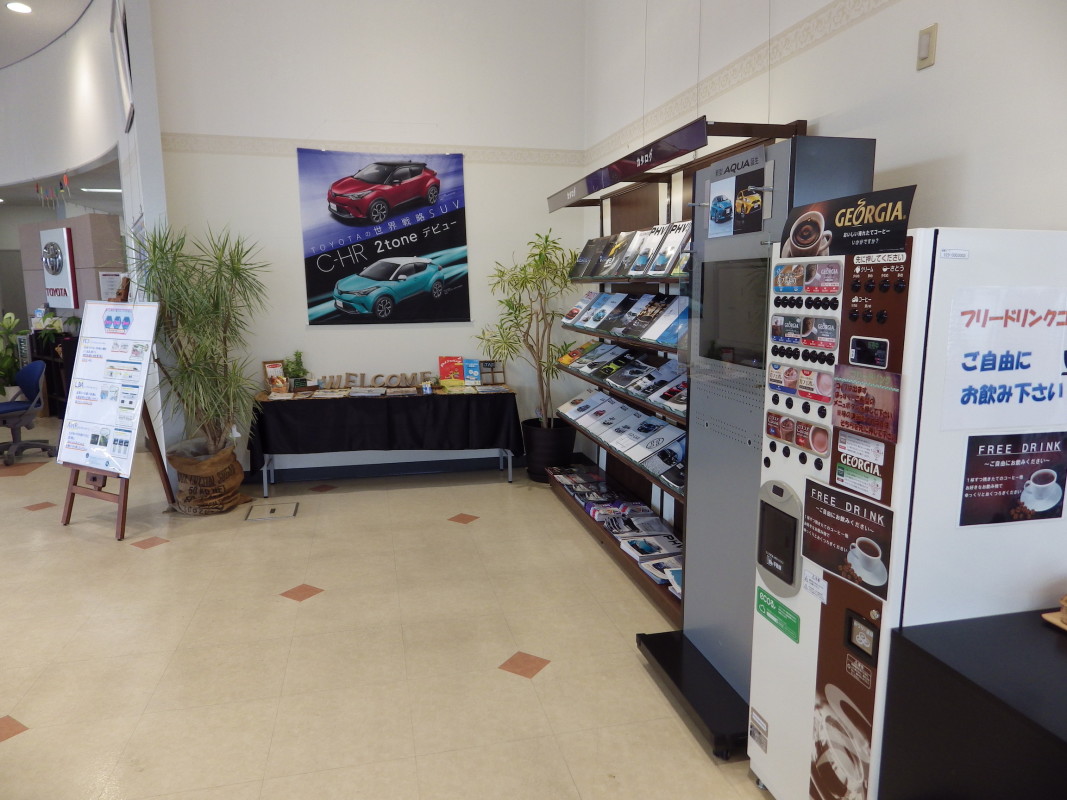 トヨタ車・中古車の販売、自動車の整備・修理、損害保険代理店業務を行っている店舗です。