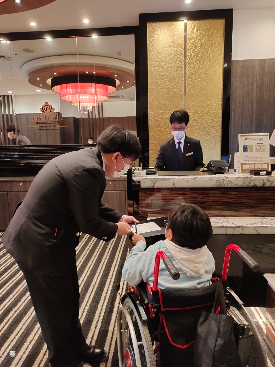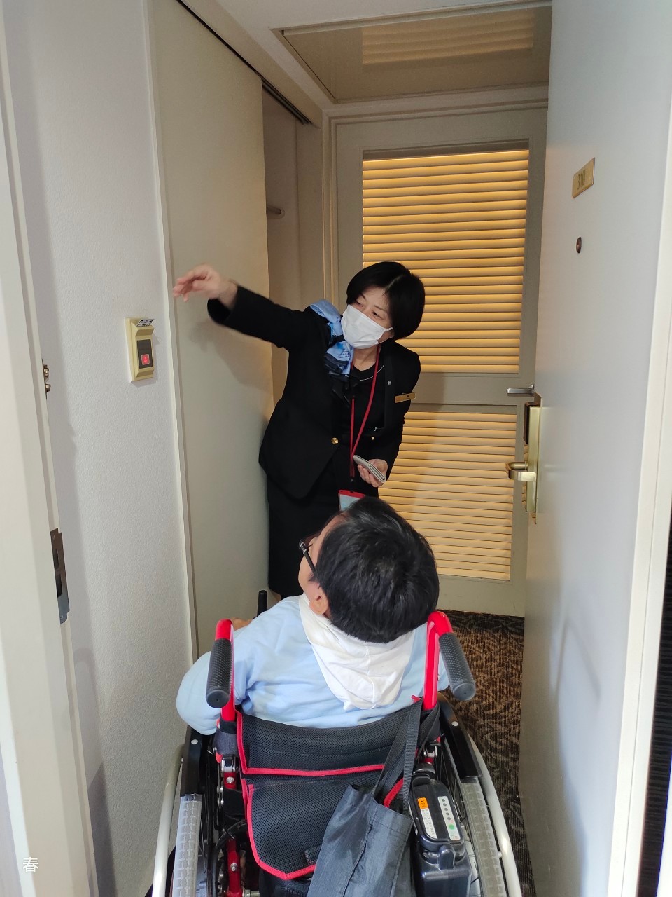 ツインルームで、ベッド周りや通路が広かったので、車椅子でも移動がしやすかったです。