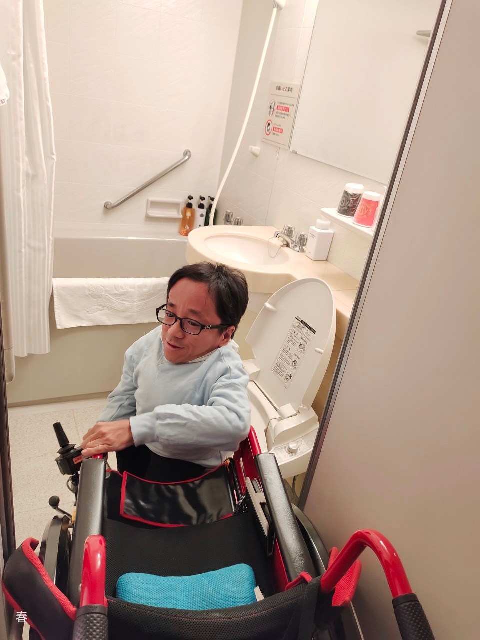シングルルームは先程のお部屋よりも狭く、私の車椅子もギリギリ通れるくらいで回転は難しかったです。
