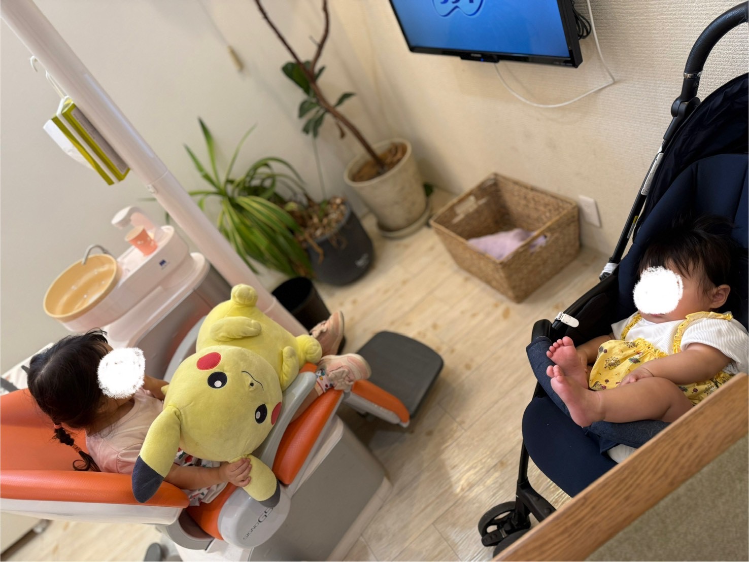 待合室のぬいぐるみを娘が気に入っていたことを伝えると、すぐに持ってきてくださり、ぬいぐるみの力も借りつつ無事に歯のチェックを終えることができました。