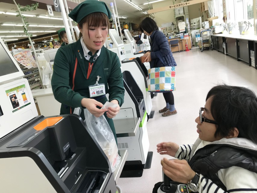店員さんが見当たらないときは、買い物中のお客さんにお願いすることもあります。皆さん、声をかけさえすれば手伝ってくれるので、ちゃんと声を出すことが大切です。