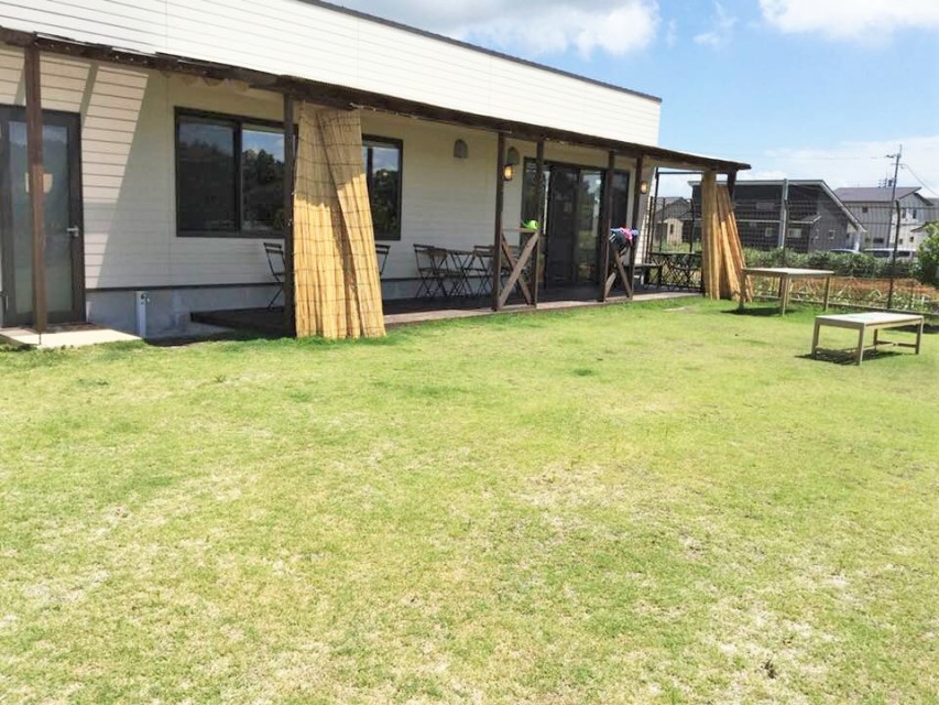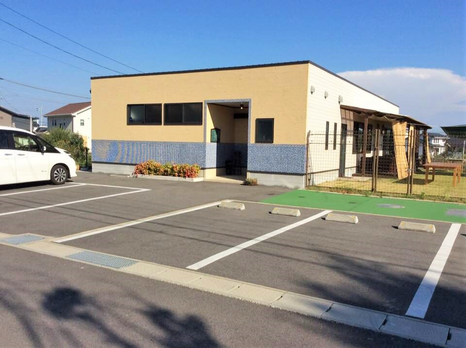「大和町にあるカフェで、石井樋入口交差点から西側に入り、100mくらい直進した左手にお店があります。向かい側は介護老人保健施設しょうぶ苑です。お店は白い壁の平屋づくりで、壁には青いタイルが貼られているお店です。ドッグランのスペースがあり、白い看板が目印です。」。