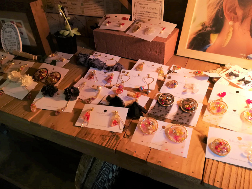 入口にはアクセサリーや雑貨も並べられており、ランチが来るまでの間子どもと一緒に、これはどう?などと言いながら、可愛いアクセサリーに私の目は輝いた。