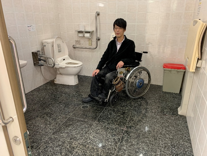 そして、多目的トイレについては、はじめに訪れた階段のあるメイン入り口の付近にあります。とても広く手入れの行き届いた清潔なトイレは使い心地抜群です。介助者の方にとっても立ち回りがしやすいこと間違いなしでしょう。