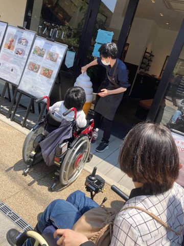 ソフトクリームのオブジェクトを動かして通りやすくしていただいたり、店員さんやお客さんに出入口のドアを開閉していただいたり配慮していただき、入店しやすかったです。