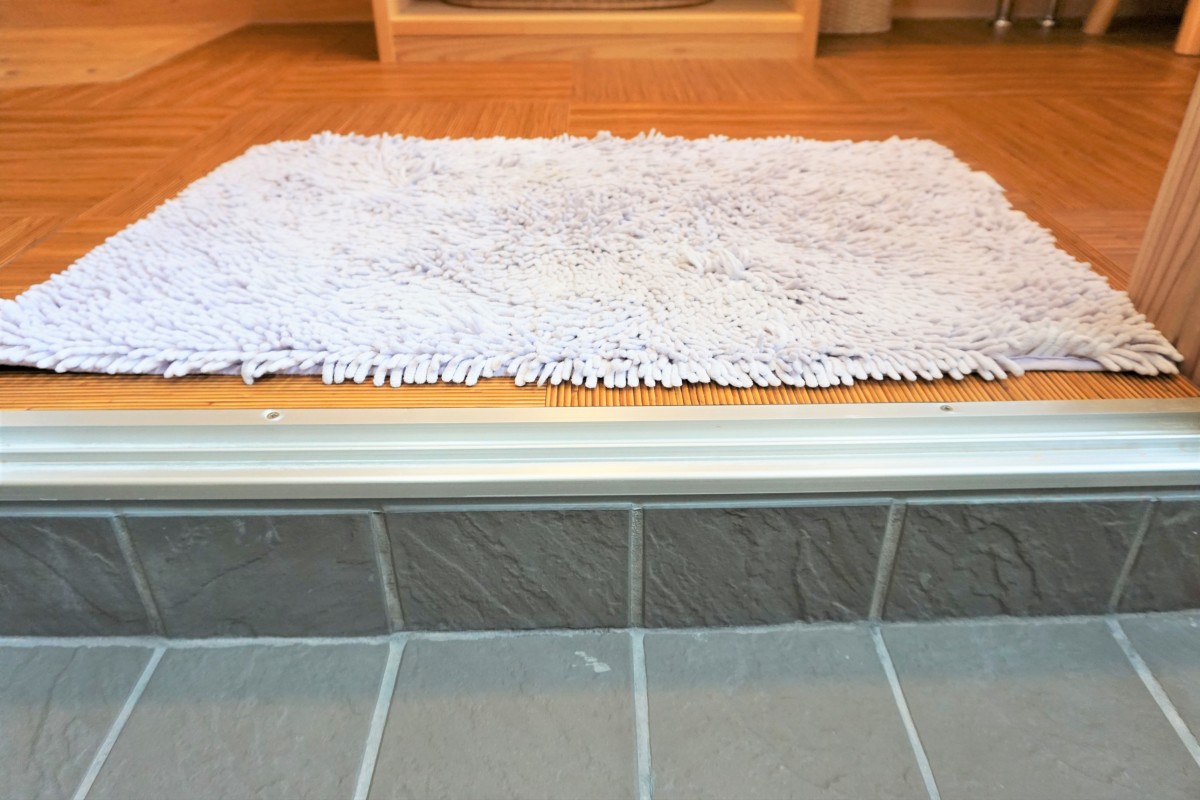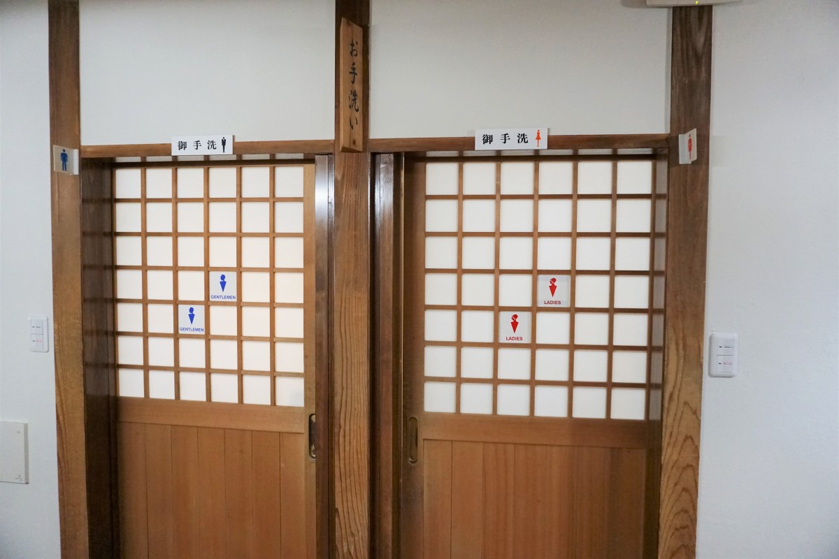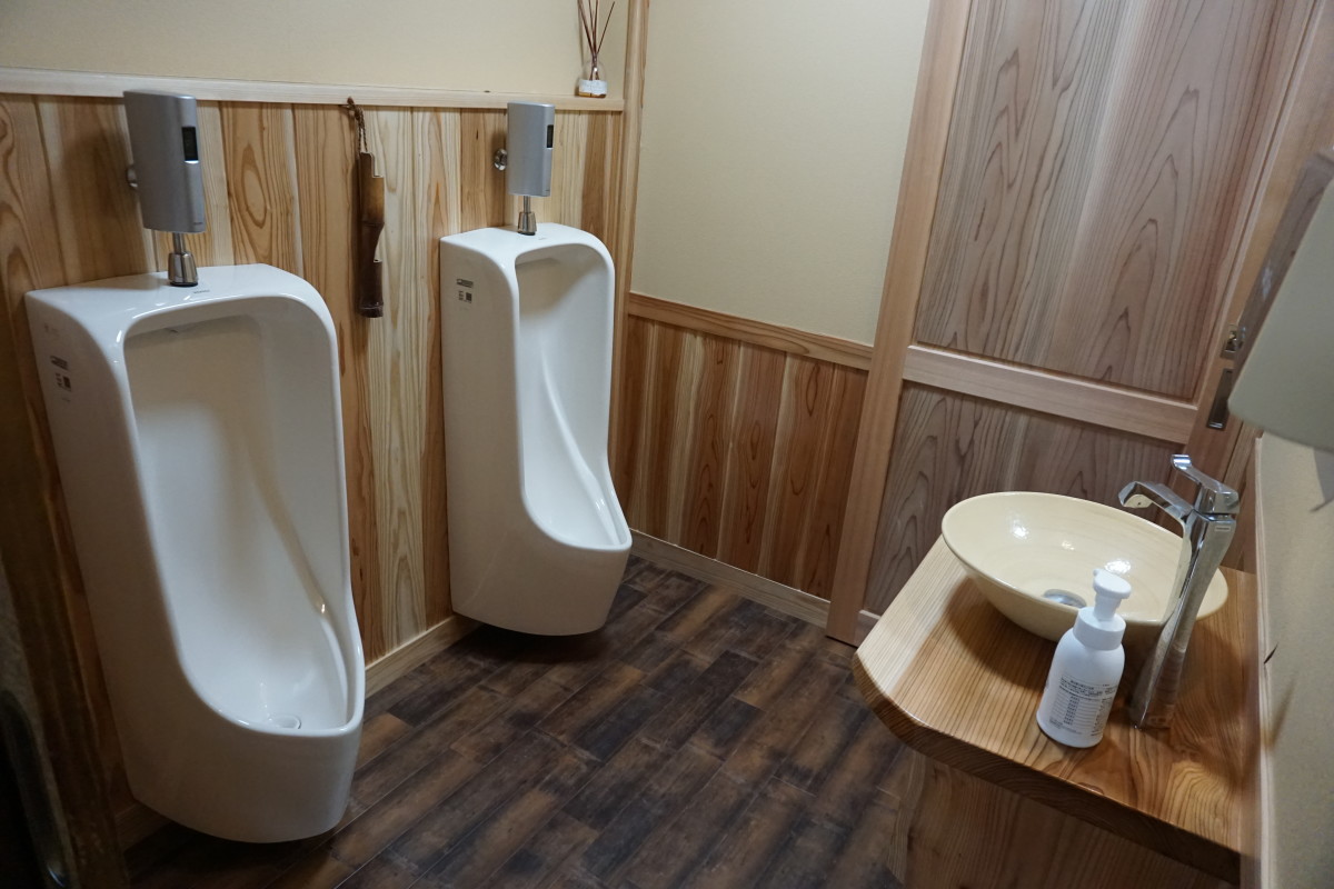 男性トイレの入り口は下がる段差あり
