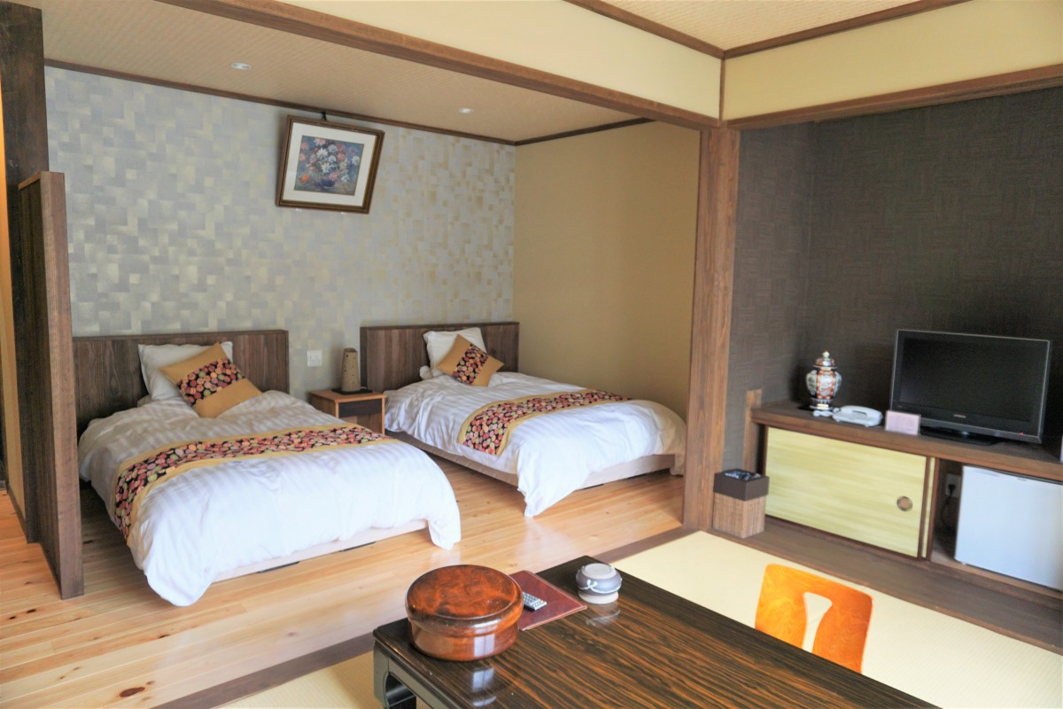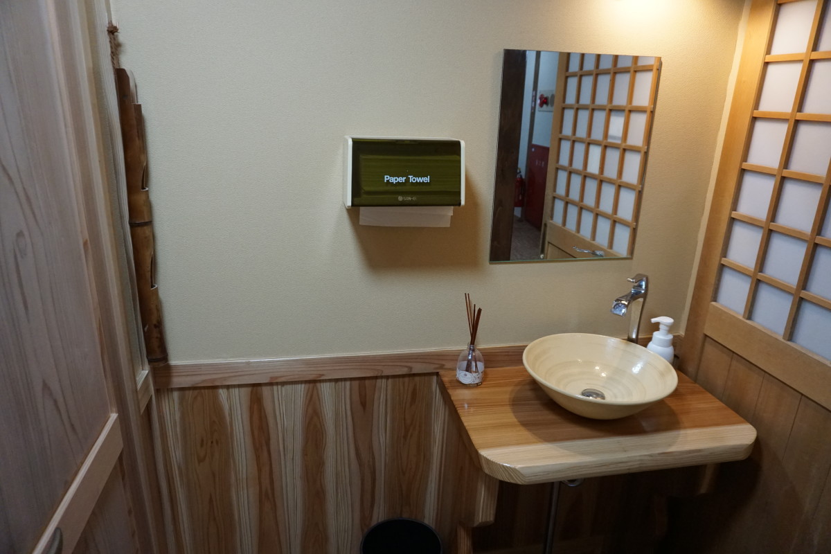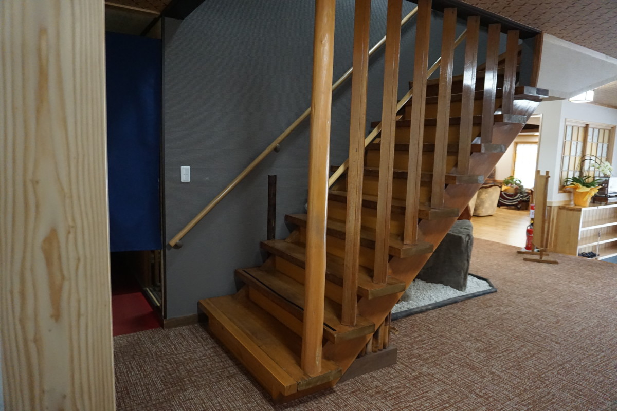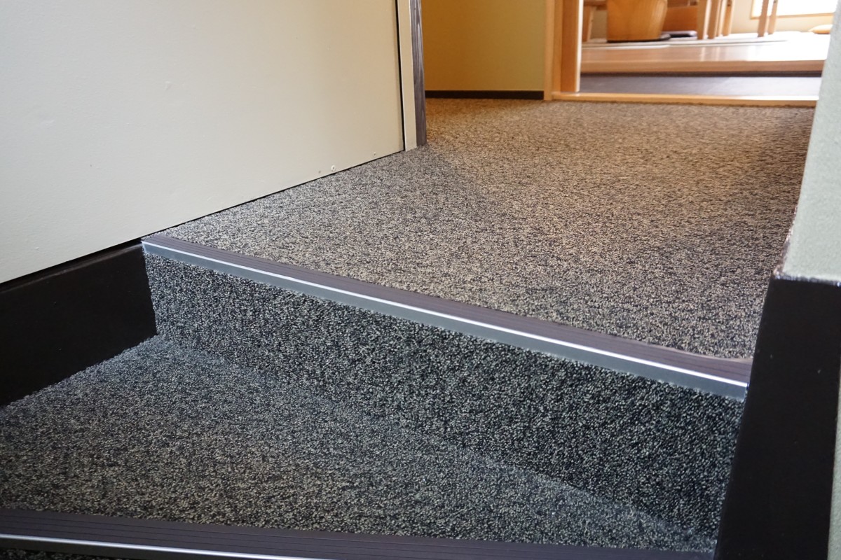 2階和室の客室内のトイレは1段下がる段差あり、手すりつきです。