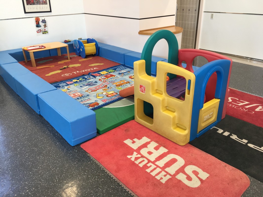 お子様連れでもゆっくりとお待ち頂けるようキッズスペースを用意。別棟でウェルキャブステーションがあり、車イスにお乗りの方でも安心してご来店いただく事ができます。カタログだけでは分からない実車の使い勝手や機能・操作を実際にお試しいただけます。