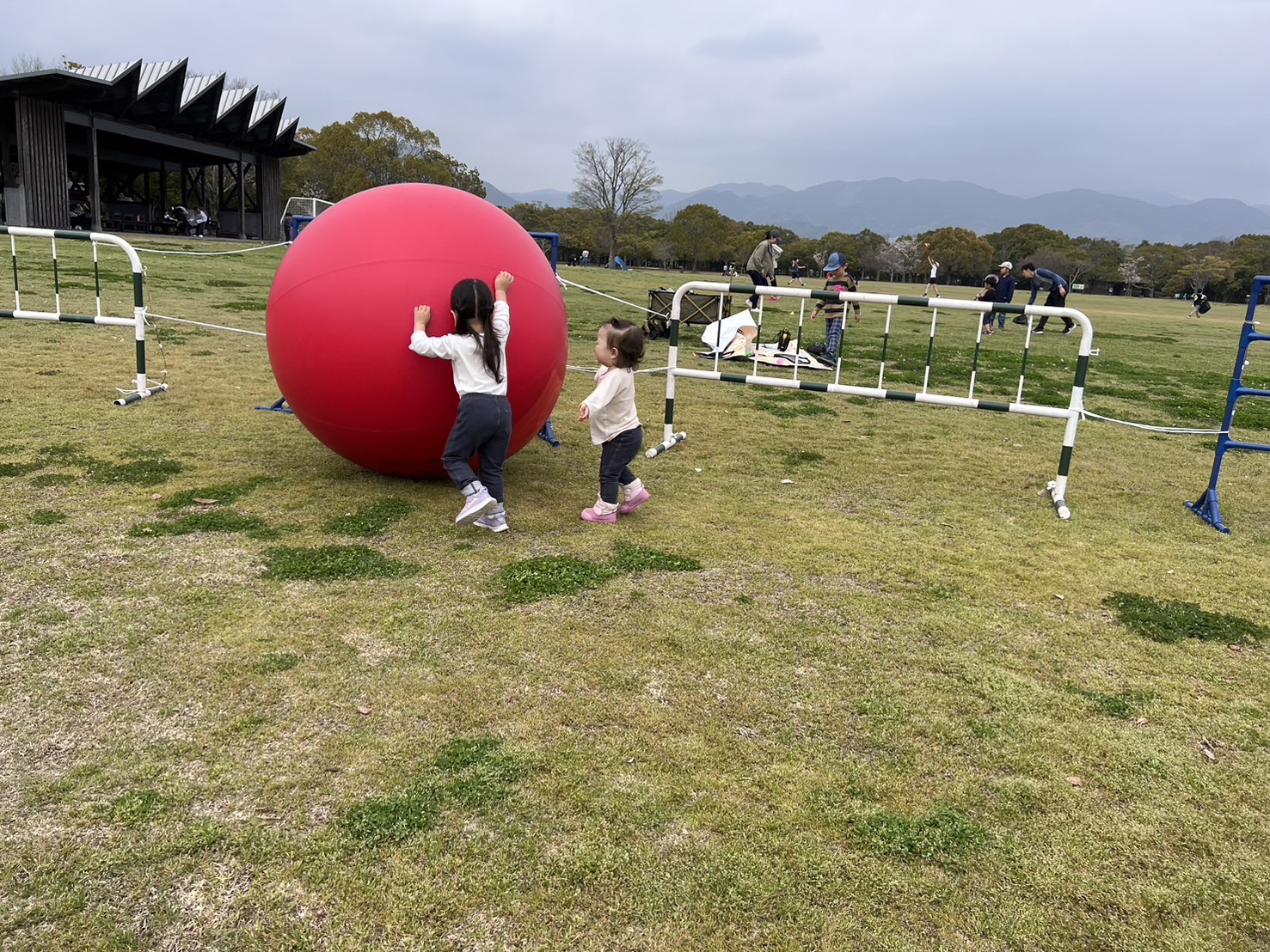 遊具やビッグボールで遊べる広大な芝生広場、バーベキューができる野外炊事コーナーもあり、観光でも行楽でも利用できます。
