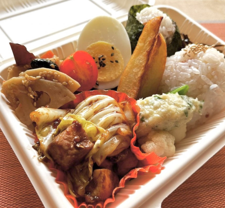 お持ち帰り用に、おばんざいやおにぎり、フレンチトーストもご用意しています。