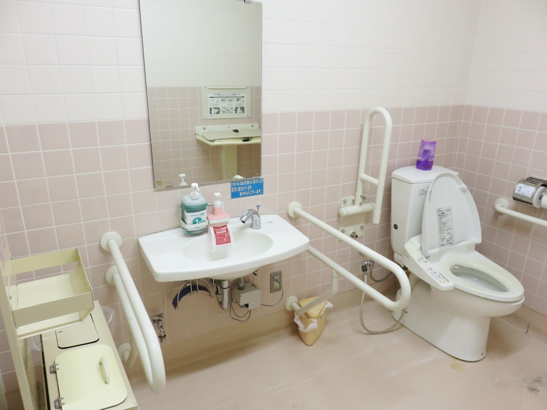 車いす対応トイレ・おむつ交換台あります。