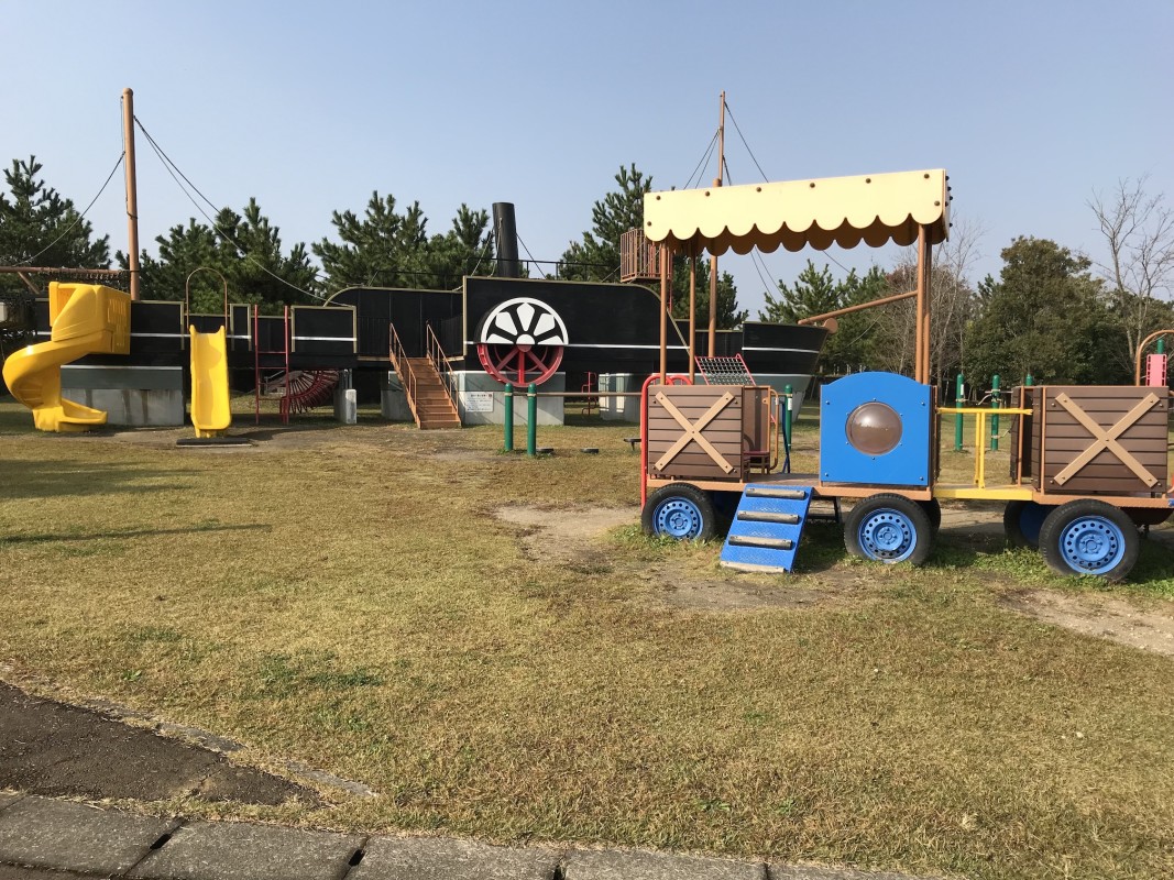 垂直落下の滑り台や凌風丸をモチーフにした大型遊具などがたくさんあります。夏には小さい子どもも楽しめるプール(20センチメートル, 40センチメートル)が大人気です。