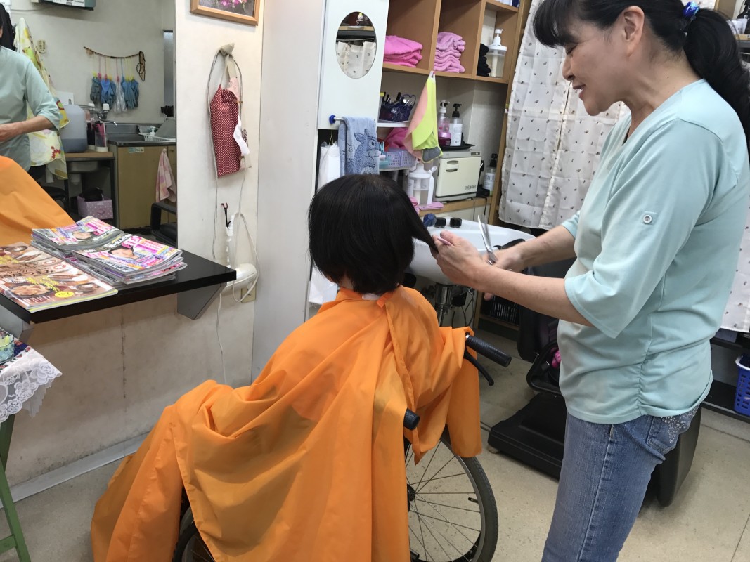 オーナーの三男が自閉症+知的障がい児だったことがきっかけで、普通の美容室や床屋さんに行けないことで悩んでおられた子供さんのお宅に行ってカットをしていましたが、徐々に店舗のバリアフリー化や、訪問カットの設備を充実させていき、今の形となりました。