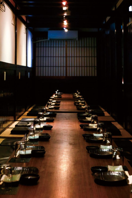 カウンター席から、4〜8名のテーブル席、座敷を含め約150席あり、愛敬通りの白い大きい提灯が目印です。