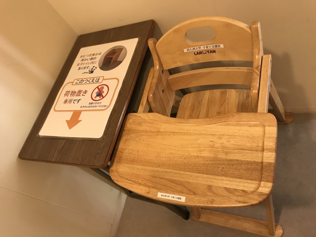 食堂にお子さま用いす、お子さま用食器の設置あり(R1年度さがすたいるプラス補助金活用)