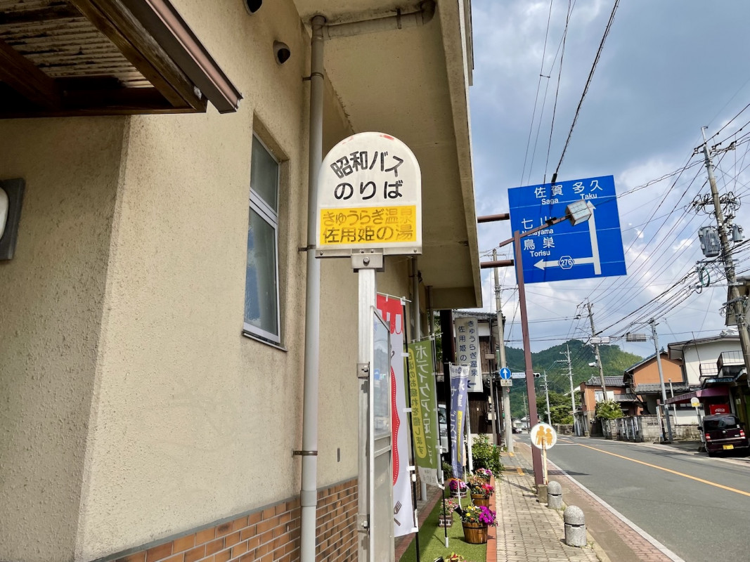 佐賀方面行きバス乗車「厳木温泉佐用姫の湯」バス停下車(当館前)