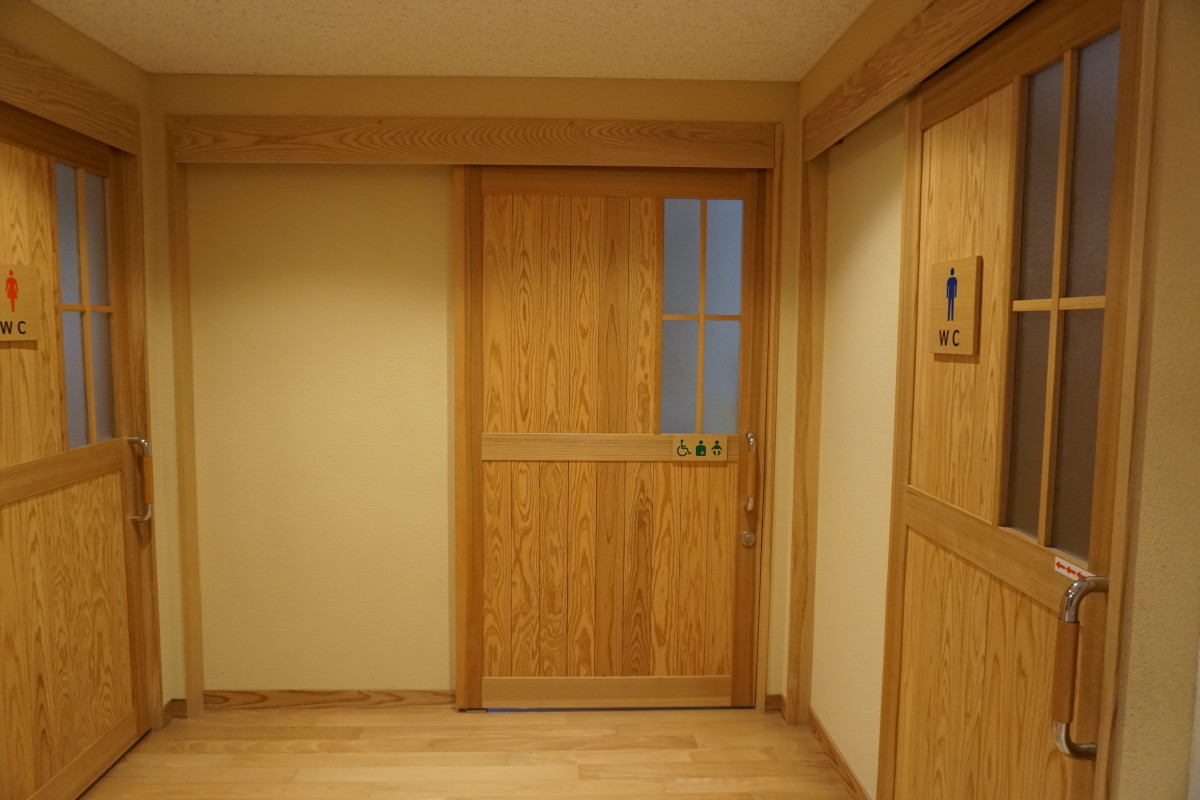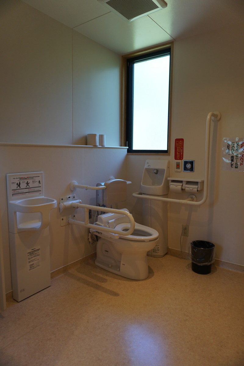 施設内にはご高齢の方や車いすの方も楽しめるように工夫しており、ユニバーサルデザイン仕様のトイレもあります。