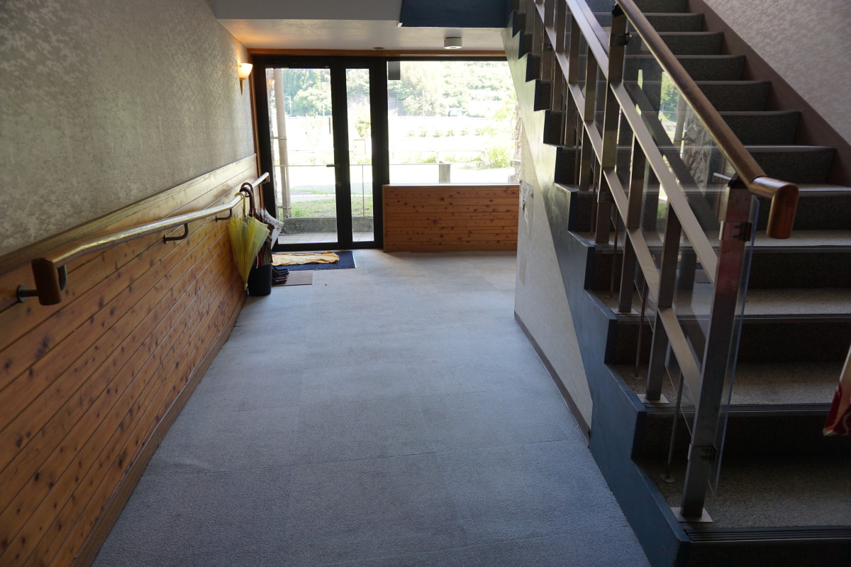 カラオケルームへ下りるところに階段あり(外から別入り口のスロープにて入室可能)